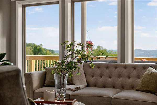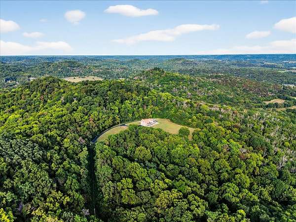 Southern Elegance with Rooftop Sunsets and River Valley Views. Open the front door to a dramatic two-story wall of glass, framing breathtaking vistas high above the Cumberland River Valley. Designed for seamless indoor-outdoor living, the home is surrounded by a charming Southern porch, an expansive deck, and a walk-out patio, giving nearly every room access to fresh air and sweeping views.