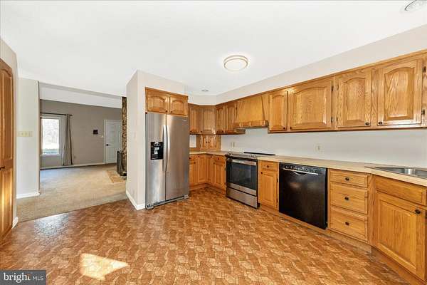 Welcome to this custom 4 bedroom, 2 full bath home set on over 3.4 acres in a peaceful, retreat like setting. This move in ready property features a brand new roof, new HVAC system, new commercial grade hot water heater, new stainless steel kitchen appliances, and fresh paint throughout. Large windows fill the home with natural light, creating a bright and welcoming atmosphere. The spacious family room features a wood burning fireplace and flows seamlessly into the kitchen and dining area. The kitchen offers abundant cabinet space, new stainless steel appliances, and a separate dining room with easy access to the rear deck, perfect for grilling and entertaining. The main level includes two generously sized bedrooms and a full bathroom. Upstairs, you will find two additional large bedrooms and a second full bathroom. The basement is partially finished and includes a laundry room, quarter bath, and ample storage space, with room to add additional finished living area if desired. Outside, the oversized detached two car garage includes a bathroom and offers excellent space for a hobbyist, workshop, or home based business. The property is surrounded by mature trees, offering privacy, along with a flat yard ideal for outdoor activities. A backup cistern provides extra water storage, perfect for gardening and outdoor projects. Enjoy a short walk to public access at Mill Creek Bridge, which is seasonally stocked with trout. While tucked away in a private setting, the home offers quick and convenient access to I 81 and nearby shops and amenities. A rare combination of privacy, upgrades, and convenience.