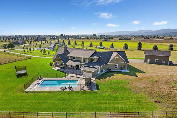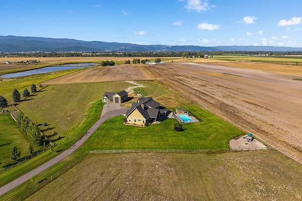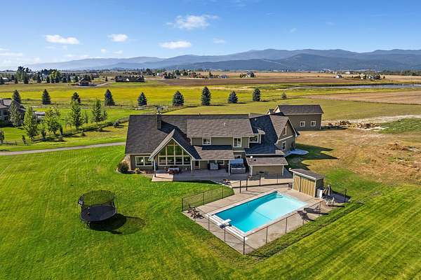 Discover the perfect blend of luxury & functionality in this stunning 6BD/5BA estate, set on 5.68 acres w/ 360-degree panoramic views of the Swan Mountain Range, up to Whitefish Resort, & down to the Mission Mountains. W/ 4,379 SF of thoughtfully designed living space, this home offers an inviting atmosphere, w/ large windows to capture the stunning view, a large kitchen that blends into the dining area for seamless entertainment, & a spacious main level primary suite. Features a built-in pool w/ new fencing & sidewalks, w/ easy access into the home through a shower/sauna room. The 480 SF guest apartment attached to the 1,140 SF shop provides privacy for visitors, & an RV bay offers RV parking & full hookups. Take in breathtaking Montana sunsets from your own private retreat, where elegance meets convenience in a location that embodies the best of Big Sky Country. See Feature Sheet in Docs.