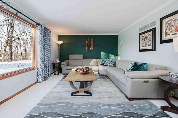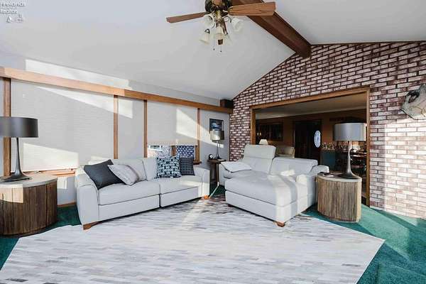 Rare Riverfront Ranch on 2..27 Acres - Sandusky River!Rare opportunity to own a beautifully maintained ranch home with an open floor plan and stunning river views. The great room features cathedral ceilings and large windows that fill the space with natural light. The kitchen offers granite countertops, new stainless steel appliances, a built-in oven and microwave, and a gas cooktop. Enjoy three bedrooms plus a possible fourth (currently used as a 3rd living room), an updated bath, and first-floor laundry off the primary suite. The finished basement provides extra living and storage space. Recent updates include a new roof (August) and a newly replaced and sealed driveway. Relax or entertain on the brick paver patios overlooking the river. A rare opportunity for peaceful riverfront living! This home is move in ready aside from anything cosmetic to make it your own. Roof 2025, rebuilt water softener 2024, new double front doors 2020, washer dryer 2022, disposal 2024, garage door opener 2024, bath remodel 2023, sump pump 2024, gutter guards, electric oven with air fryer, central vacuum, driveway replaced 2021, sealed 2024 gas cooktop 2023.