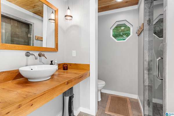 Once-in-a-Lifetime Country Retreat on 28.65 Acres - Bordering Cornhouse Creek. Welcome to a sanctuary of serenity, nature, and timeless charm. Nestled on 28.65 pristine acres that border the tranquil waters of Cornhouse Creek, this unique estate is more than a home - it's a destination. A grand entry greets you with majestic stacked stone columns and a covered bridge, guiding you into a haven of peace and privacy. Thoughtfully designed with a split-bedroom layout, the residence features: 3 spacious bedrooms & 3 full baths, inviting family room with masonry wood-burning fireplace, kitchen with granite countertops, stainless steel appliances, raised breakfast bar, laundry room, basement area, and double carport. Interior Highlights are a show stopper with gleaming hardwood floors, tile shower, and every detail speaks of quality. Enjoy LED lighting, double-pane windows, walk-in closets, crown molding, and panoramic views from every angle.