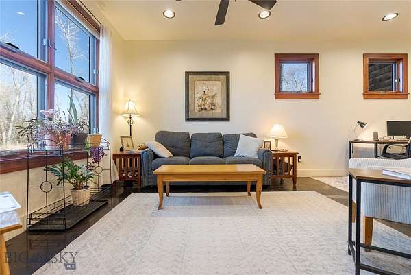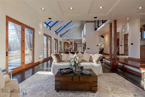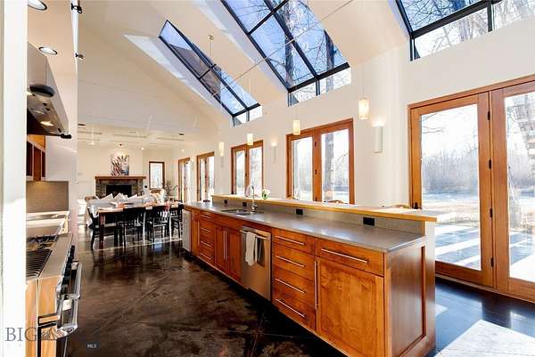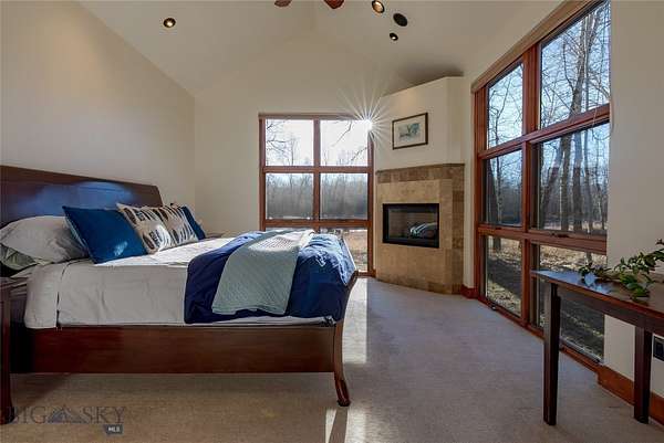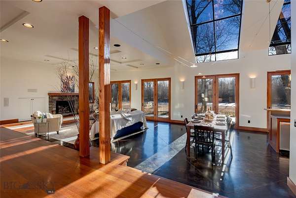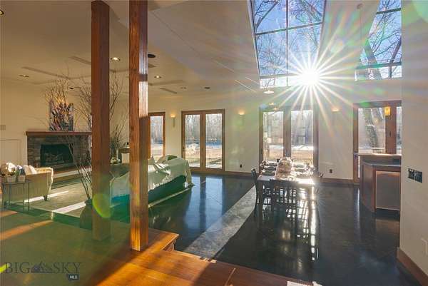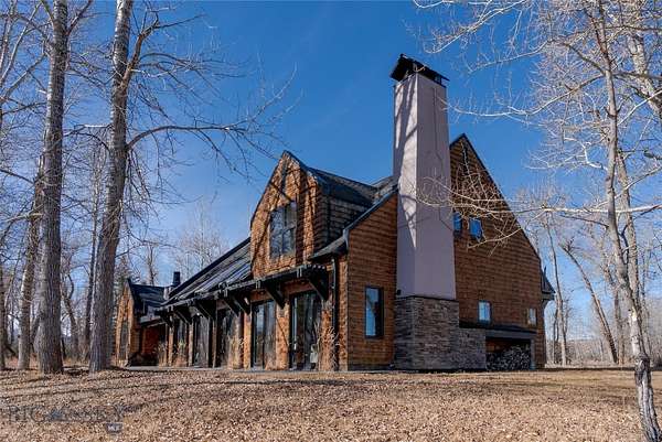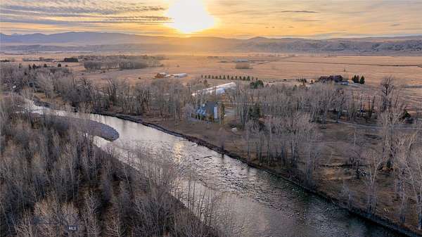 Tucked along the banks of the famed Gallatin River South of Bozeman you will find 40+/- acres with over 1/2 mile of prime river frontage. The 4013+/- sqft 4 bedroom 3.5 bath home designed by Van Bryan Architects embraces nature to the fullest. The open floor plan has an expansive epicurean kitchen, etched concrete floors with radiant heat, 5 sets of glass French doors, windows and thoughtfully placed skylights that flood the space with warm light and river views. The living room has a gas fireplace and raised seating area with wet bar -it is the perfect landing spot to relax, visit and watch the river. The master bedroom is complete with large steam shower, travertine gas fireplace, double sinks, a seated vanity and large walk in closet. After a hard day of play, soak in the hot tub just outside the bedroom door. The laundry room and large mud room area complete the area attaching to the 2 car heated garage. Traveling up the floating staircase you will find two bedroom suites with full baths and a work area overlooking the river....perfect area for tying flies! On the West side of the house lies an attached 733 +/- sqft guest cottage with private entrance and 1 car heated garage. Natural light illuminates the 1 bedroom 1 bath space and it is self-sufficient with a laundry closet, living room, full kitchen and mud room area. Outside there are several inviting gathering places and a wood burning fireplace with river views. Walking the grassy path along the river you will find the historic 1919 Cabin where you can step back in time. The 1919 Cabin is perfect for day use, a studio or parties. (cannot be used as a living space). A wide variety of wildlife abounds in this ideal riparian habitat and river corridor. The fishery in this stretch of the river does not get much pressure due to the location, and encompassing both banks of the river, it presents an angler with more casting opportunities! There are too many incredible attributes of this special property to list here. It is a must see in-person offering. Location is key - just 20+/- minutes from downtown Bozeman - 78+/- miles to W entrance to Yellowstone National Park - 15+/- miles to Bozeman International Airport and close proximity to thousands of acres of public land for recreating. The famous Stacey's Bar and Steakhouse is just down the road a piece. The property is protected in a conservation easement with Gallatin Valley Land Trust. The current owners stewardship shines through...serenity awaits.