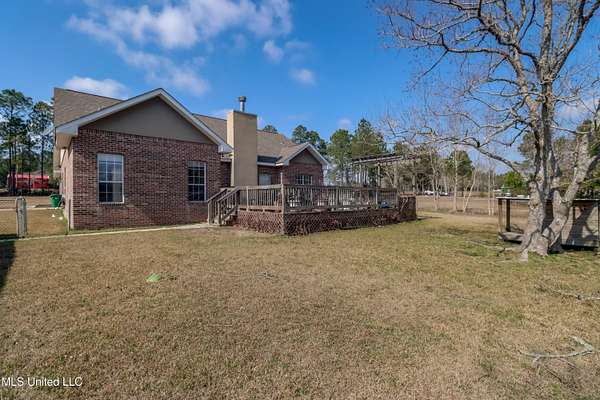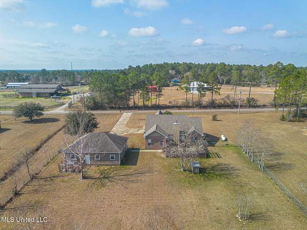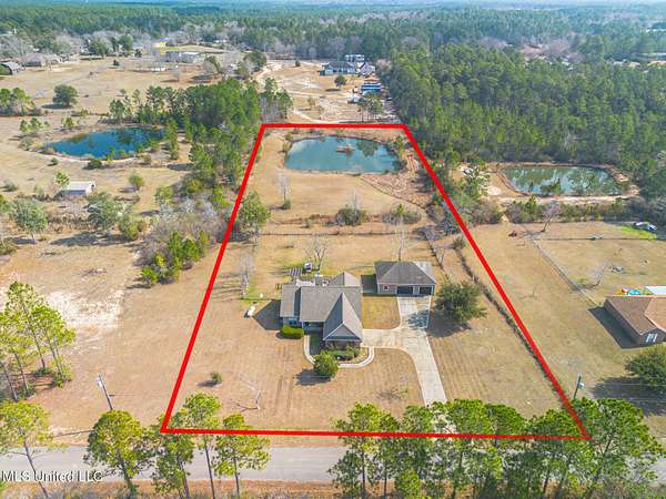 Agents please read remarks before showing this Peaceful 3.3-Acre Split-Plan Retreat with Pond & Workshop in Gulfport Located north of the interstate in a quiet dead-end road setting, this 3-bedroom, 2-bath home offers privacy, space, and strong potential on 3.3 acres. This split floor plan features new luxury vinyl plank flooring throughout the main living areas and new carpet in two bedrooms. The living room showcases a brick, wood-burning fireplace and opens to both a formal dining room and a separate breakfast nook, giving you flexible dining and entertaining space. The kitchen includes granite countertops and a functional layout ready for everyday living. The primary suite includes double vanities, a jacuzzi tub, and a separate walk-in shower. Outside, you'll find a fenced backyard and your own stocked pond just beyond the fence line perfect for relaxing and enjoying the country setting. A detached two-car garage doubles as a potential workshop and includes an additional separate room ideal for an office, gym, or hobby space. With great bones and room for personal touches, this property is ideal as a first home or forever home. Enjoy country living with acreage while still being a short drive to shopping, dining, and amenities centrally located for convenience. This country slice of paradise wont last long so book your showing today!