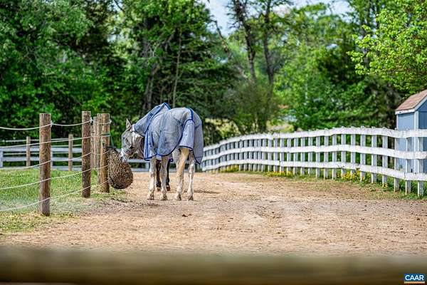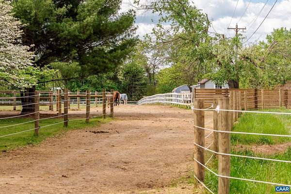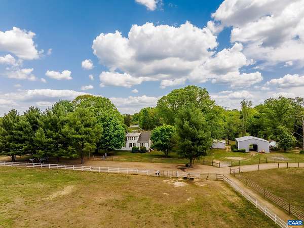 Welcome to this beautiful and functional training and boarding farm, thoughtfully designed for both horse and rider. The charming three-bedroom, two-bath home offers warmth and character throughout, featuring soaring ceilings and stunning custom built-ins. The main level includes a spacious eat-in kitchen, dining room, living room, a bedroom (currently used as an office), a cozy parlor (also used as an office), and a full bath. Upstairs, you’ll find two comfortable bedrooms and an additional full bath. Equestrian amenities include a center aisle barn with four stalls, feed room, tack room, a large wash stall with hot/cold water, and a storage loft. An adjacent riding ring provides excellent training space. Additional improvements include a detached two-car garage, an enclosed carport that doubles as hay and equipment storage, and two additional storage barns. The farm is highlighted by a world-renowned track system, exceptionally well designed to seamlessly connect multiple paddocks and support both training and optimal pasture management. The property is further enhanced by two separate entrances (farm and private) and a privacy fence surrounding the majority of the property, creating a peaceful and secure setting.