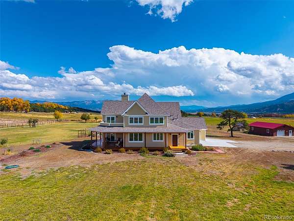 Beautiful Country Estate custom built with wrap around cedar wood covered decks that boast views of two gorgeous Mountain ranges. Facing west you take in gorgeous Colorado sunsets over the peaks every evening. This property is located just outside of the historical town of Salida on 11.7 fenced acres. The home was impeccably built in 2018 by Fish builders in a custom country farmhouse style found in places like the Napa Valley. Be greeted by a large private entry, into the open kitchen featuring quartz countertops, center island, top of the line appliances, Wolf range, Subzero refrigerator and microwave oven drawer. Open dining room placed for the perfect views and open to a large comfortable living room featuring a stone wood fireplace. The primary bedroom on the main floor is massive with a walk-in closet, drawers and shelves. The connecting primary bath features double vanity, step in shower and soaking tub. A lovely spindled staircase leads to 3 additional large bedrooms and full bathroom plus a massive office with enough room for two, built in book shelves and a sliding glass door to an outside deck. Off of the kitchen leads down to an unfinished 1642 sq ft basement that is drywalled & stubbed in for an additional bath. The laundry room and mud rooms are located on the main floor leading to the 3 car attached garage. Outside, there is a 1300 square foot outbuilding garage/workshop. Fenced acreage includes irrigation provided via the HOA. This property is flood irrigated. Irrigation equipment and 10 X 20 equipment shed (or horse shelter) included. The setting of this property is just beautiful backing to a ranch in a conservation easement so no further development behind this property. Enjoy beautiful sunsets to the west over the mountain range from your decks. Recreation abounds nearby with Gold Medal Fishing on the Arkansas river, Skiing at Monarch and Hiking and Biking in the surrounding public lands. This is a "One of a kind" Special Place. By appointment.