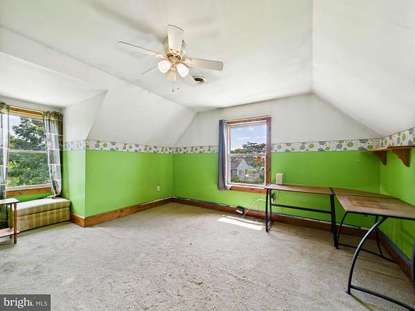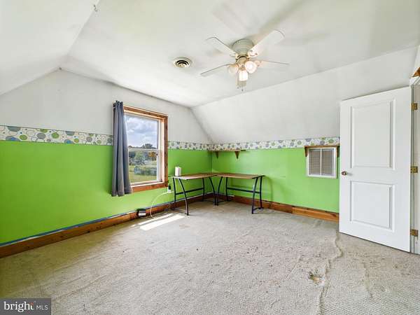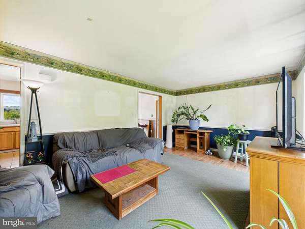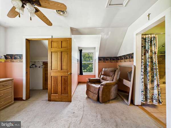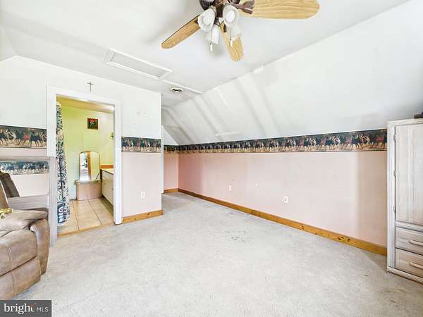 - Carpet, Ceiling Fan(s), Chair Railings, Combination Dining/Living, Entry Level Bedroom, Primary Bath(s), Stall Shower Bathroom, Tub Shower Bathroom