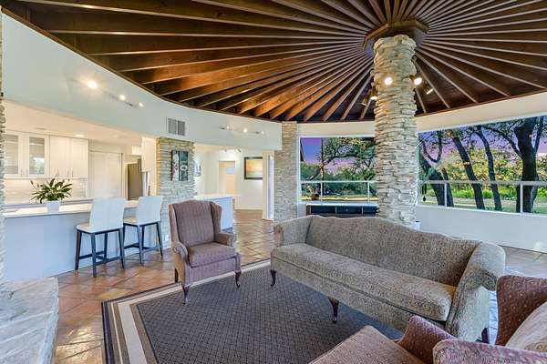 A rare opportunity to own 4 private acres in North Austin, just minutes from Hwy 620 and the Apple campus. Surrounded by mature oaks and natural beauty, this property offers a level of privacy, usable land, and flexibility that is increasingly hard to find this close to the city. The 1964 home blends timeless architectural character with thoughtful modern updates, including a remodeled kitchen, renovated primary suite with a new bath and oversized walk-in closet, updated secondary bathrooms, and fresh interior paint. The centerpiece of the home is a striking living room with mid-century influence, dramatic wood-beamed ceilings, natural stone accents, and a wall of windows that brings the Texas landscape into full view. Whether you're looking for a private residence to enjoy now or a future dream-home site while keeping the existing home as a guest house, the property offers a unique combination of character, functionality, and long-term potential. Just minutes from major employers, dining, shopping, entertainment, and everyday conveniences, the setting feels quiet, secluded, and far removed from the pace of the city. Fully usable 4-acre homesites rarely come available in this market area. Properties like this are hard to replace and even harder to forget once you've seen them.