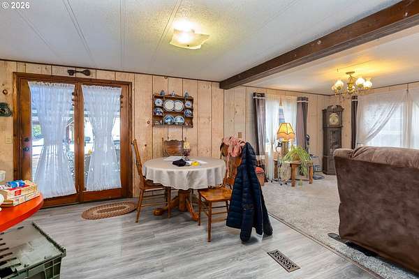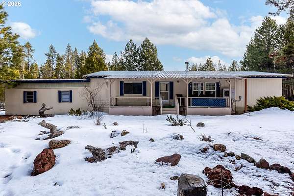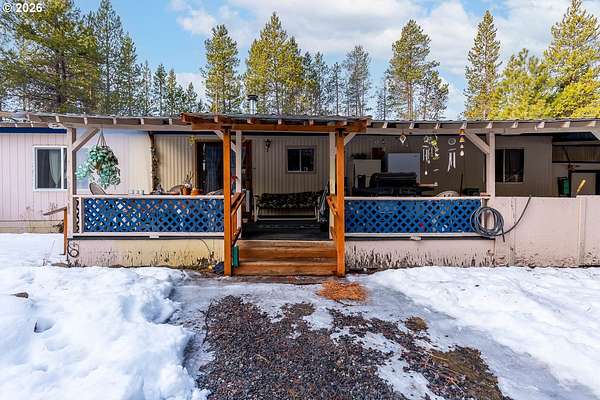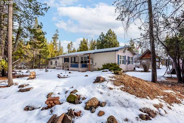 Well-maintained manufactured home on real property located in the desirable Two Rivers North Subdivision on 1.97 usable acres with a peaceful, wooded setting. Property offers privacy and year-round recreational access to Hemlock Creek. Suitable for full-time living or recreational use.The 1978 Marlette home features 1,248 sq ft with 2 bedrooms and 1 full bath with a walk-in shower. Layout includes a living room, dining area, and kitchen. Electric forced-air heat, wood-burning stove, and mini-split system provide year-round comfort. All appliances included, and seller may consider selling furnished or unfurnished.Recent updates since 2022 include new living room carpet, new flooring in the dining room, kitchen, and hallway, new refrigerator and washing machine, a 2024 walk-in shower, and a new 40-gallon water heater installed in 2025. Septic system recently serviced and new 1,100-gallon cistern installed.Property improvements include front and back covered porches, attached garage with full-length lean-to, detached covered carport, and extensive RV and toy storage. A 28x40 shop with two 12-ft bay doors, concrete floor, power, and wood stove provides excellent workspace. Two full-length covered lean-tos offer space for RVs, trailers, boats, or equipment. Tin roofing on all covered areas allows for easy snow removal. Level lot with paved road access and RV hookups.Located minutes from Crescent, Odell, Miller Lake, Willamette Pass Ski Resort, and numerous high-mountain lakes and trail systems, offering convenient access to fishing, hiking, ATV riding, and snowmobiling.