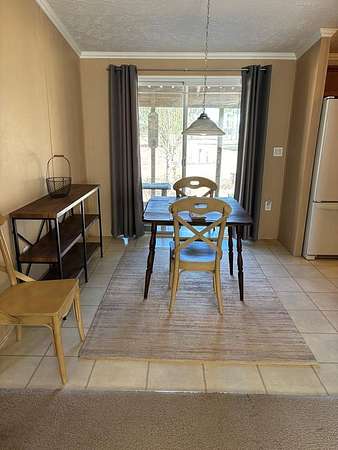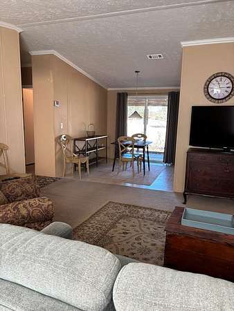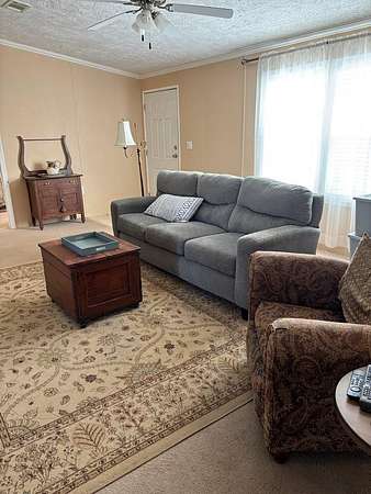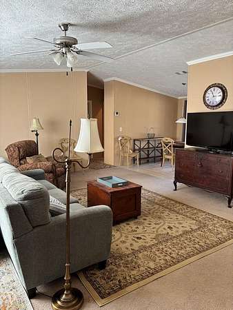 - Blinds, Ceiling Fans, Electric Dryer, Electric Range, Laundry/Utility Room, Living Room, Microwave, Open Floor Plan