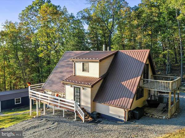 Come and see this spacious cabin with one of the best views in Augusta, WV! The property boasts over 5.5 acres of property with easy access to Delray Rd. The highlight of the cabin is the oversized wrap around deck with a breathtaking view! The home has new flooring, fresh paint, new deck boards, updated bathrooms and kitchen. Each level of the home has a large bedroom and a full bathroom. The upstairs master bedroom has its own walkout deck to enjoy the view and fresh air. For bonus indoor space, the basement is over 1000 sq ft and has a level outdoor entrance. There is a wood stove in the basement for supplemental heat on those extra cold nights. A new shed will convey with the property. The location of this property is 28 miles from downtown Winchester, VA and 16 miles from downtown Romney, WV.