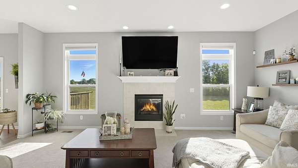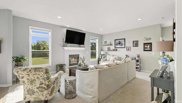 OPEN HOUSE Sunday 12/7, 1-3PMMotivated Sellers**Presenting a beautiful Lancia two-story home in Aero Landing, designed with an open-concept layout and a full daylight unfinished basement that's already plumbed for a future bathroom. The main floor features 9-foot ceilings in the living room with a cozy gas log fireplace, along with a convenient primary suite offering a spacious walk-in closet, double sinks, and a walk-in shower. The kitchen is thoughtfully equipped with a breakfast bar, quartz countertops, a large island, full pantry, and stainless steel appliances, seamlessly connected to the dining area. Completing the main level is a half bath for guests and a large laundry room. Upstairs, three additional bedrooms, a full bath, and a flexible loft space await, ideal for an office or playroom. The home includes a 33 x 21 three-car garage, all set on a 1.5-acre lot near schools and shopping, perfectly blending comfort and functionality in an inviting setting. Schedule your showing today!
