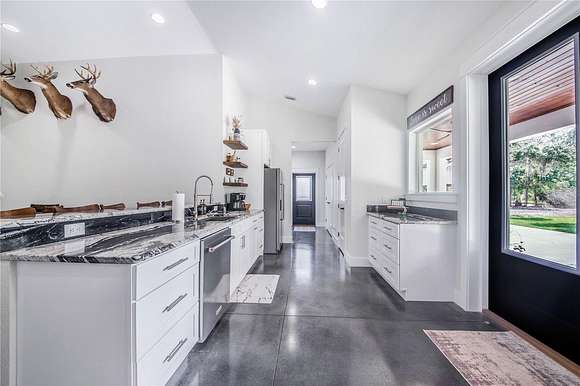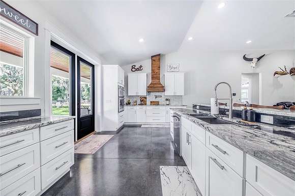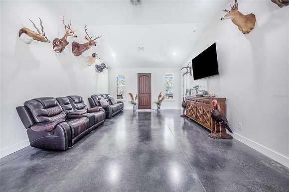 "DON'T MISS OUT ON THIS RARE FIND!" GET READY TO FALL IN LOVE WITH THIS BEAUTIFUL DREAM HOME! Secluded and charming on 2+ acres and surrounded by state and federal land. This beautiful 3-bedroom, 2-bathroom home is now available for sale! Enjoy a quiet atmosphere and admire the natural untouched Florida landscape and wildlife! This home offers the perfect blend of tranquility and convenience. For the Fisherman or weekend boating this home is a short distance from beautiful and famous Lake Hatchineha located on the Kissimmee Chain of Lakes. This great home features a spacious living room, perfect for family gatherings with beautiful designer concrete floors throughout. Modern kitchen with stainless steel appliances, granite counter tops, and ample cabinet space. Master bedroom with ensuite bathroom and walk-in closet. Two additional bedrooms ideal for a growing family. The large back porch overlooks the beautifully landscaped backyard with separate BBQ grilling area, a perfect area for relaxing or entertaining guest! Large, oversized driveway for parking convenience and large oversized pole barn for additional parking or storage. This home is located in the country but not far from schools, shopping, medical complexes and restaurants. Close to parks, walking trails and recreational facilities for outdoor activities. Don't miss this fantastic opportunity schedule your showing today and make this house your home sweet home!