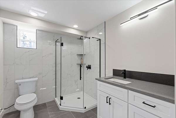 Totally new home inside and out with 6 bedrooms and 5 bathrooms on 5.37 acres. It has been totally updated w/high end kitchen appliances to include a smart refrigerator, induction stove and hard surfaces that waterfall the large island. Three of the bedrooms have on suite bathrooms and either could be used as the primary bedroom or could be used for multi generational home. Two of the on suite bedrooms are on the upper level and one on the main floor. The main floor is done in LVP flooring throughout. The dining area steps down to the large living/family room w/lots of windows and a slider to the covered back deck that wraps around the end of the house. The basement is one large family room w/slider to the back patio and includes a bedroom, bath and laundry room. While being updated, all the electrical and plumbing was updated including electric panel. A new forced air electric furnace was installed with central air conditioning. Outbuildings include a two car oversized garage and large barn.