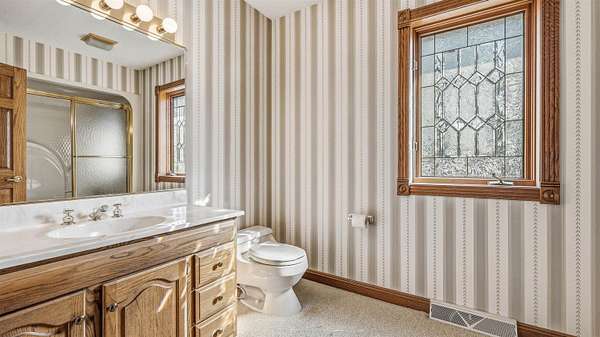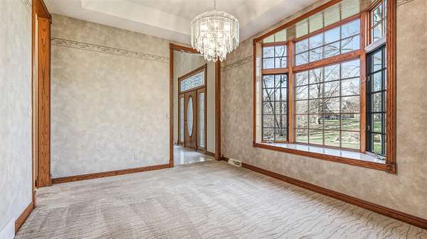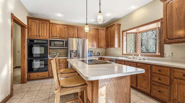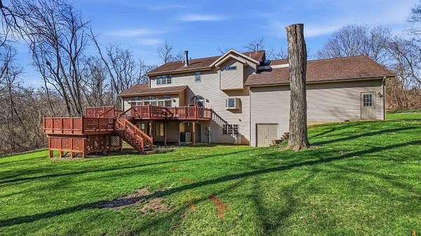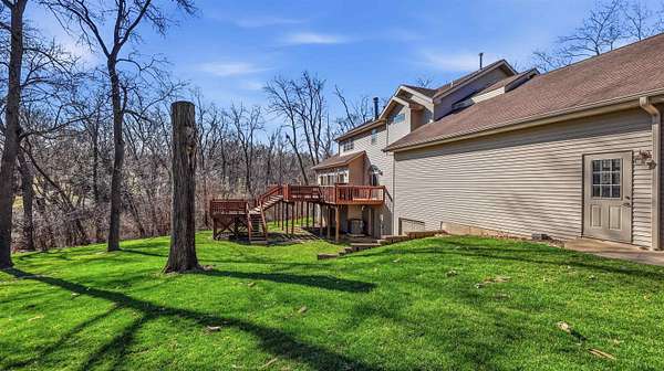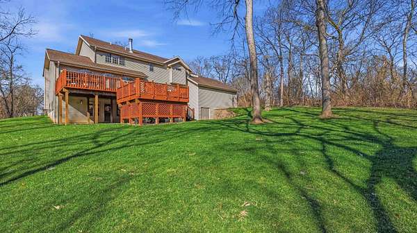Est $3,826/moWooded 2.48 acre lot in Dubuque, 4 bed, 4.5 bath,3 car garage. This grand home has a 19 ft ceiling in the entrance, large family rooms, large deck overlooking the private back yard with an abundance of wildlife. This home offers over 4500 sq ft of living space. Solid quality throughout the home. Master Suite with fireplace, HUGE walk in closet and master bath. 2 nd Master suite on the upper level with walk in closet. This home has double sided fire place from kitchen to main level family room. Storage galore! Full work area in garage with solid oak cabinets and sink area. This home is a peace of heaven right off of JFK Rd in Dubuque. No Covenants!