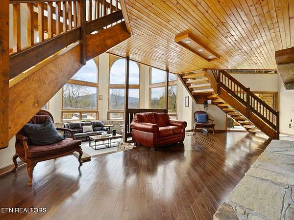 Looking for an STR that can do $500k annual gross? Crestview Estate is a fully furnished turnkey luxury estate with a unique see-through pool and sweeping views of the Great Smoky Mountains offering unparalleled investment potential in the heart of the Smoky Mountains in a quiet setting yet only a 5 minute drive from the strip. This 7-bedroom, 5-bathroom, 6,696 sq ft cabin, on 4.58 private acres borders a large 50% owned pond and has served as a cherished family retreat for a family that uses the property ~60% of the year as a personal residence, sharing the remaining available days with select guests through popular rental platforms like VRBO and AirBNB (established brand, website, software, and existing reservations transfer with sale). The picturesque setting draws weekly wedding requests, the large sweeping lawn is a perfect location for a wedding pavilion, and oversized rooms allow for large events indoors during inclement weather. With a proven track record yielding a compelling 17% cap rate, Crestview Estate delivers exceptional value as a rental or family estate.