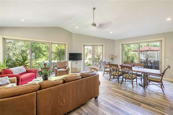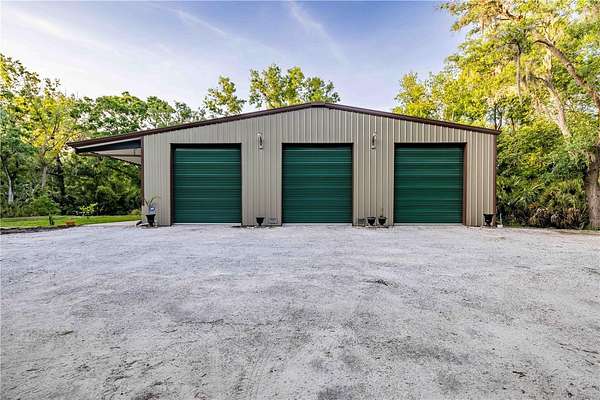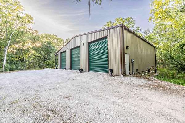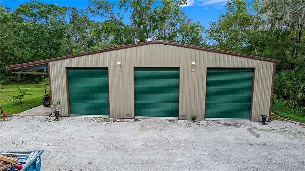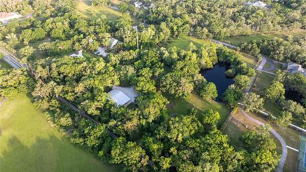 Build Your Dream Home on 5.7 Acres Overlooking a Pond--Complete with Guest House, 3-Bay Workshop & More! Endless opportunities await on this scenic 5.7-acre property. Whether you're ready to create your custom estate or enjoy the thoughtfully designed guest house. This property offers comfort, flexibility, and room to grow. The guest house, built with solid poured concrete reinforced with steel and rebar, is exceptionally well-constructed and designed. On the main level, you'll find a spacious office with custom built-in cabinetry, a bedroom, and 2 sitting areas--one with a Murphy bed that can easily convert into a private suite with its own kitchenette and private entrance. Plantation shutters add timeless elegance, while a bright sitting room opens to beautifully landscaped grounds featuring a swim spa, expansive deck, and an outdoor kitchen. The custom Blaze grill with smoker is set within a built-in enclosure complete with a protective metal door--perfect for entertaining in any season. The second level of the guest house feels like a private residence of its own, complete with a full kitchen, living room, dining space, private balcony, a generously sized bedroom with two walk-in closets, and a full bathroom. Huge garage on the house with a kitchen area complete with a dishwasher located on an upper level of the garage and right by the grilling area! Guest house has an incredible garage with tons of storage and can accomodate 2 RV's. Car enthusiasts, light industrial work, and hobbyists will also love the huge metal 3-bay workshop with its own bathroom. This versatile building is ideal for storing cars, RVs, boats, or lawn/large equipment, and also includes an upper-level storage loft that could double as an office. An additional covered side bay provides even more space for equipment. With 5.7 acres of open land and a serene pond backdrop, there's plenty of room for equestrian use, gardens, or building your dream residence. This property offers the perfect blend of function, leisure, and future potential. The metal roof on guest house was replaced in 2022!