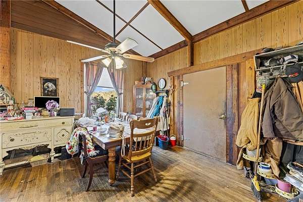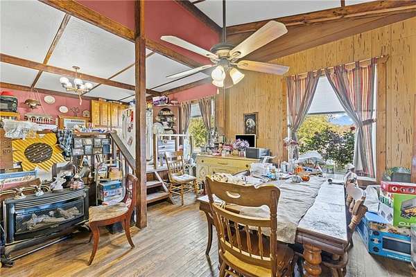 Discover this charming 3-bedroom, 1-bath home situated on 55 treed acres, offering a serene rural lifestyle. The property features a detached garage and additional outbuildings, ideal for storage, hobbies, or small-scale farming. Included with the purchase is a valuable rock quarry, presenting income potential. This estate combines peaceful country living with promising business opportunities, making it a versatile and lucrative investment. If you have been looking for an opportunity to escape the hustle of city life, make this country property yours! Property Features: Acres: 55 acres of diverse landscapes, including abundant mature trees providing privacy and natural beauty. Expansive open fields are ideal for recreational activities, gardening, or wildlife observation. Multiple trails for hiking, riding your ATV, UTV, or go horseback riding, perfect for exploring the natural surroundings. Wildlife Potential: A haven for birdwatchers and wildlife enthusiasts; regularly spot deer, turkey, foxes, and other wildlife native to the area. Ideal for Recreation: Whether you're looking to hunt, hike, or relax in nature, this property meets all your needs. Imagine cozying up by the crackling wood-burning fireplace in your home during those chilly winter nights. And guess what? There's another one in the detached garage! It's got 110 and 220 power, a concrete floor, and even a wood shed and chicken coop. Oh, and don't forget about the Rannai water heater - it'll heat your water in a flash, just like that!