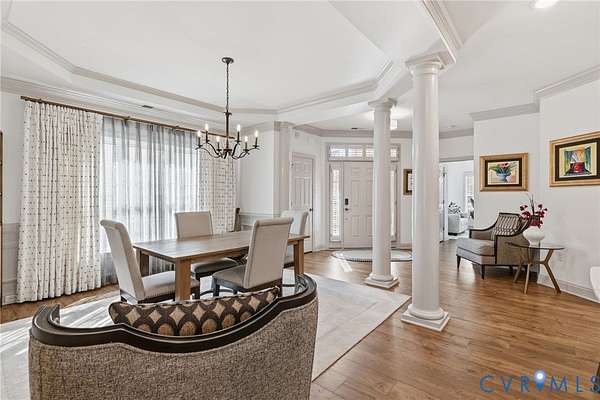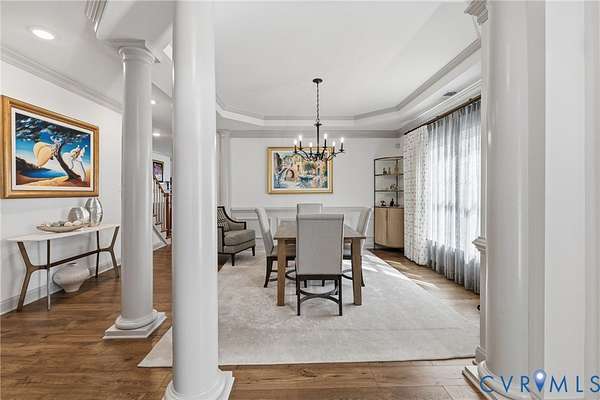 STUNNING like-new transitional home in Dominion Park at Wyndham. Built by Boone Homes, this EXQUISITE transitional residence is located in the PRESTIGIOUS Dominion Park & Wyndham offering luxury, comfort, and thoughtful design throughout. This BEAUTIFULLY maintained home features 4 bedrooms and 3.5 baths, including a second first-floor bedroom with a private en suite bath, ideal for guests or multigenerational living. The main level showcases elegant Reeve wood flooring and a bright sunroom with walls of windows, creating an inviting space filled with natural light. The GOURMET kitchen opens seamlessly to the family room with a cozy fireplace-perfect for entertaining. A formal dining room highlights a tray ceiling and striking neoclassical columns. The SPACIOUS primary suite is truly exceptional, offering a tray ceiling, custom walk-in closets and a GORGEOUS spa-like en suite bath. Upstairs, enjoy a versatile loft for family entertainment, along with bedroom #3 and an additional room that can serve as bedroom #4 or a large home office. Notable features include irrigation system throughout the yard, sealed granite garage floor, first-floor media hub, clean air filtration system integrated into HVAC, covered patio with retractable awning and privacy shade, and custom window treatments on all windows and doors. Other OUTSTANDING upgrades include an installed monitored security system panel, interior sensors on all first-floor windows and doors, exterior camera coverage of driveway, front yard, porch, side yard, backyard and patio. This section of the community includes yard care, landscaping, and trash removal for a nominal monthly fee, providing low-maintenance living. Residents enjoy outstanding neighborhood amenities including a clubhouse, pool, 4 tennis courts, 4 pickleball courts, playground, and more. This EXCEPTIONAL home offers refined living, modern convenience, and resort-style amenities-truly a rare opportunity in one of Wyndham's most sought-after communities.