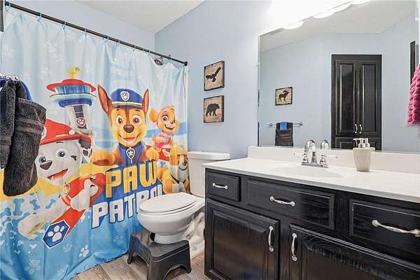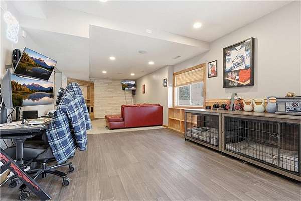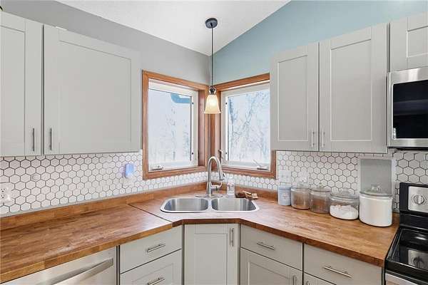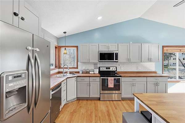 Est $2,633/moWelcome to your own private retreat in the woods. Nestled at the end of a cul-de-sac, this serene spot is one you don't want to miss! You'll love being tucked back away from the road on 2.5 acres overlooking picturesque nature and pond views. Bring your dog, because there's room to run! Walk in to a bright and open kitchen with butcher block countertops and stainless steel appliances. Walk out to the deck overlooking the property, and enjoy the peace & quiet. The step-down living room has new carpet and a gas-burning fireplace for cozy days. Enjoy a main-floor full bath, and a 5th bedroom or office. The lower level has a huge space for entertaining with a walkout, wet bar, and fireplace. This will be the ultimate hangout spot!