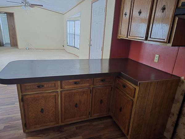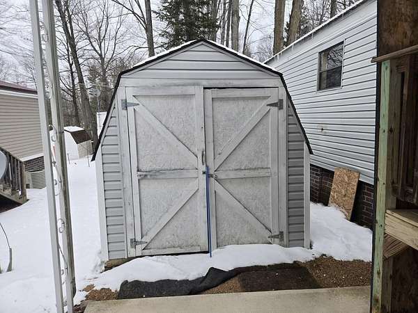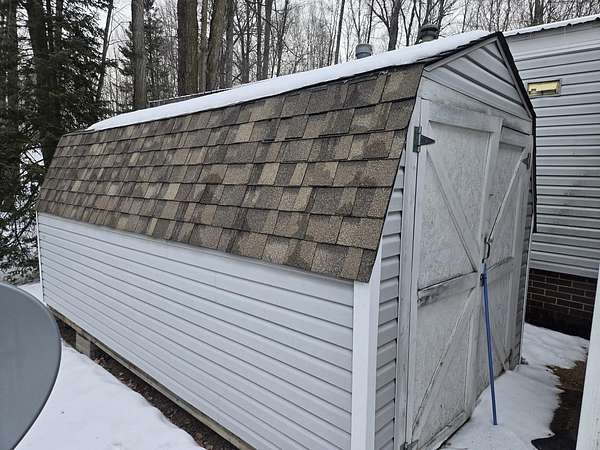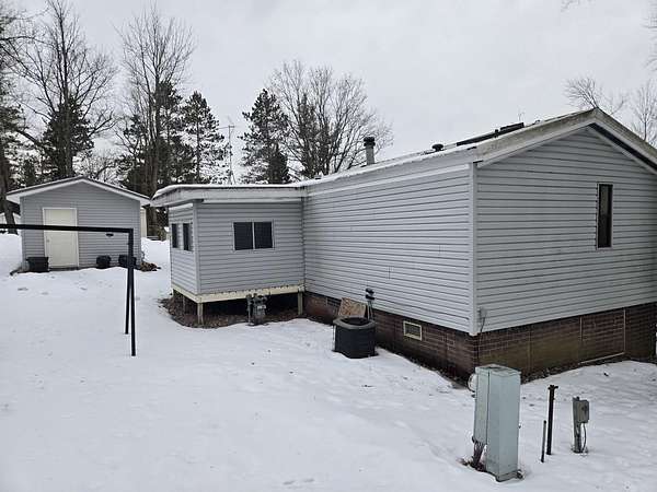 2 br 2 bath home located in the heart of Chequamegon-Nicolet National Forest , in a Resort style community. Listed for $65,000, Financing options available with approved credit. In beautiful Evergreen Park with a 12 X 24 foot garage, 8'x16' storage shed offering plenty of storage for the toys. Plenty of shade and a 3 season extra room. This hidden area offers opportunities for backyard recreation, privacy and peaceful tranquility. Home has been well cared for, new steel roof , remodeled bathroom with walk in shower. Garage is vinyl sided, steel roof, remote door operator, back entry door adjacent to 3 season room. Kitchen and living room centrally located. Full bath located at the front of the house, full bathroom at the opposite end of home in the Primary bedroom. Kitchen features newer appliances. Price point offers a rare opportunity to own a 2 bedroom, 2 bath home with a garage in Evergreen Park featuring many resort style ammenities. $300 Monthly Park Fees.