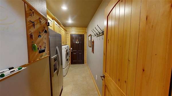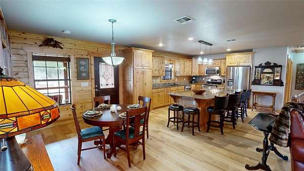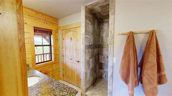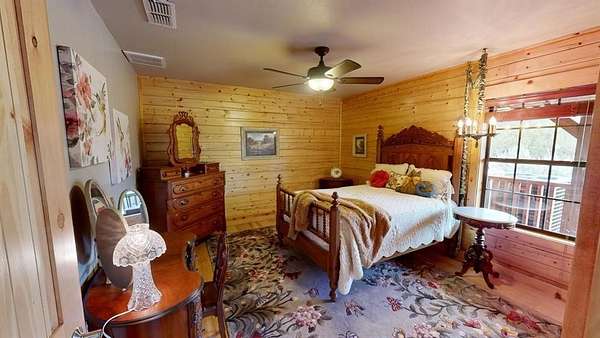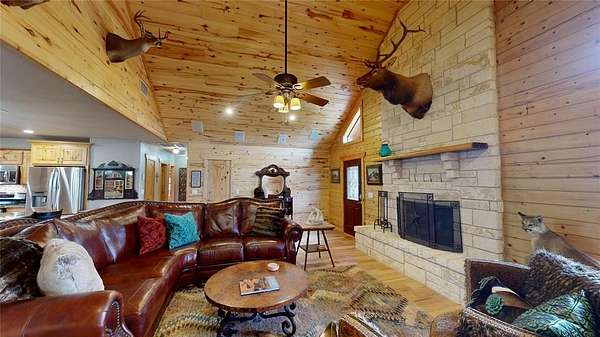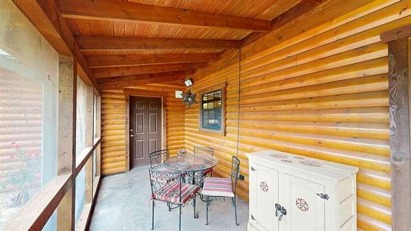 Welcome to this meticulously maintained luxury log home, nestled in a serene green setting surrounded by evergreen trees.New AC, Energy-efficient spray foam insulation & permanently installed generator. Grand, high vaulted ceilings create an airy feel, while a stone floor-to-ceiling, wood-burning fireplace, serves as the focal point of the great room kitchen & dining rooms. Stunning new oak floors, knotty alder cabinetry, and granite countertops add elegance. Chefs will enjoy the 5-burner gas range. The primary suite boasts dual sinks, a large tile shower, and 3 walk-in closets. Two additional bedrooms offer versatile living options, one with a Murphy bed. Enjoy outdoor entertainment on the wrap-around porch and screened-in patio. The Xeriscaping & backyard fire pit invites gatherings under the stars. Extra wide three-car finished, heated & cooled garage expands entertaining space. Experience luxury living in this finely crafted log home, where every detail exceeds expectations.
