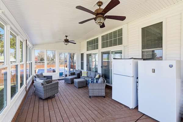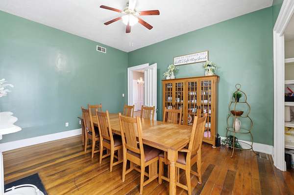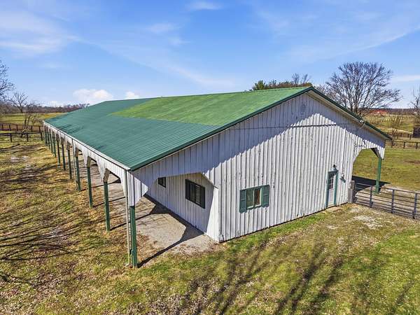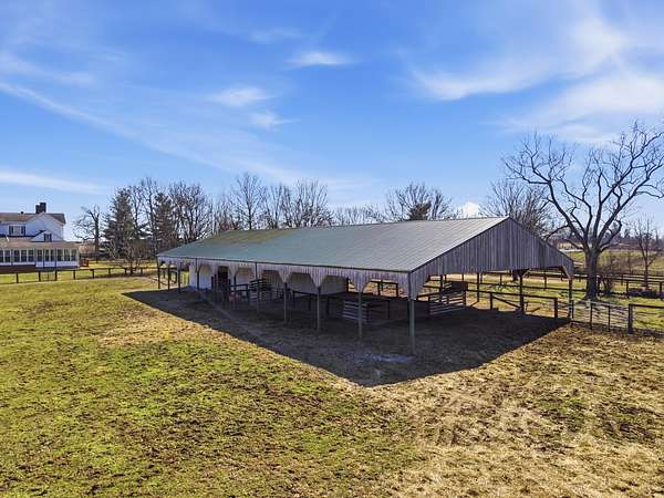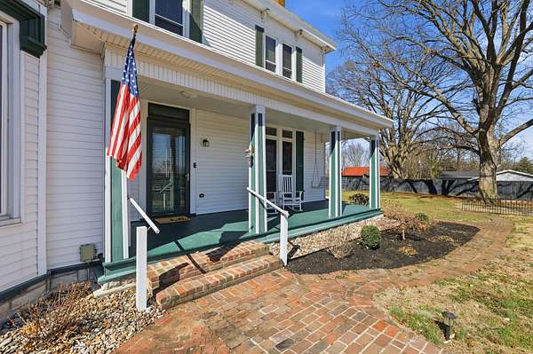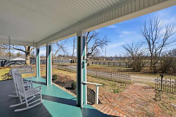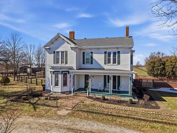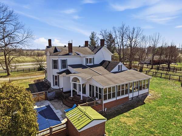 Beautifully restored circa-1881 farmhouse in Bourbon County, offering a perfect blend of historic character and modern comfort. This exceptional property consists of 4.55 acres, 5 bedrooms, 2.5 bathrooms, and timeless architectural details, including classic hardwood floors and a grand staircase. The gracious foyer opens to elegant living spaces, including a parlor/office, a formal dining room with built-ins, and a light-filled family room. The updated kitchen features slate countertops, a Wolf gas range, a separate convection oven, generous cabinet space, and an abundance of natural light. Completing the first floor is a bedroom suite with a recently updated full bathroom and dressing room. The inviting, grand staircase ascends to a bright second floor, featuring four large bedrooms, a full bathroom, and a spacious hall. The expansive porches and a stunning enclosed back porch provide year-round views of the surrounding countryside. Summer days are best spent relaxing by the in-ground pool, while evenings by the firepit are sure to be special moments. Equestrian-ready barn includes three 12x12 stalls with modern stall systems, rubber matting, storage, heated automatic waterer, covered training area or hay storage, and additional shelter. The fully fenced acreage offers privacy and flexibility for a hobby or gentleman's farm. Also included is a newly built chicken coop with a contained run and an automatic door for easy, modern homesteading.