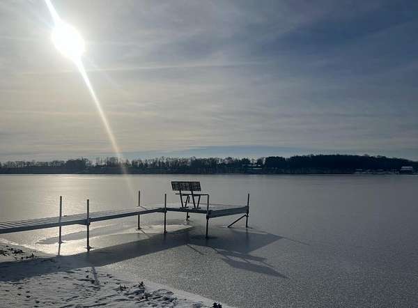 Exceptional opportunity to own 120 feet of frontage on beautiful, all-sports Bair Lake in Jones, Michigan. This 1.16-acre vacant parcel offers the perfect blend of privacy, recreation, and readiness for your future lake home or getaway. The property features a new well, electricity at the site, and a newer Amish-built shed ideal for storing all your lake toys. Enjoy the walking trails throughout the property, the limestone path leading to the dock, and the sandy beach area for easy lake access. The dock is included in the sale, making it easy to start enjoying the lake right away. Bair Lake is known for excellent fishing, swimming, boating, and year-round enjoyment. A rare chance to secure a build-ready lakefront lot with generous frontage and natural beauty.