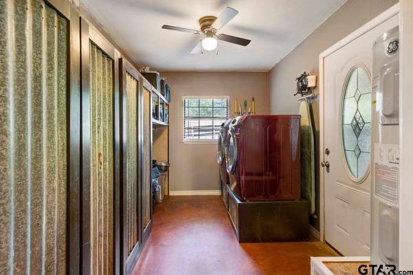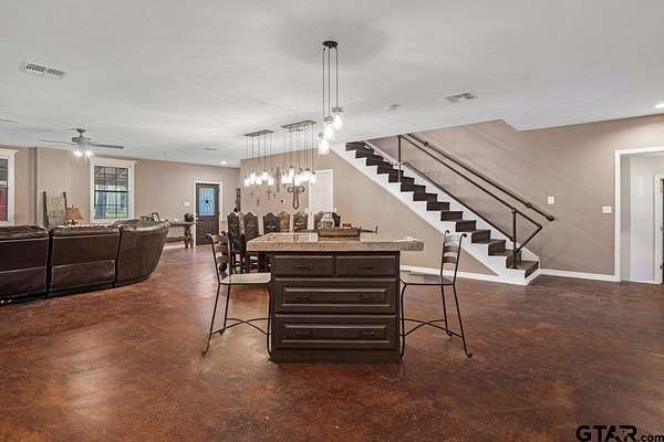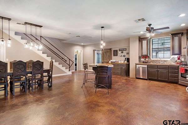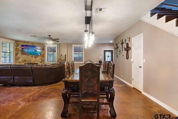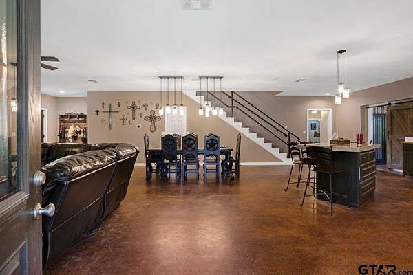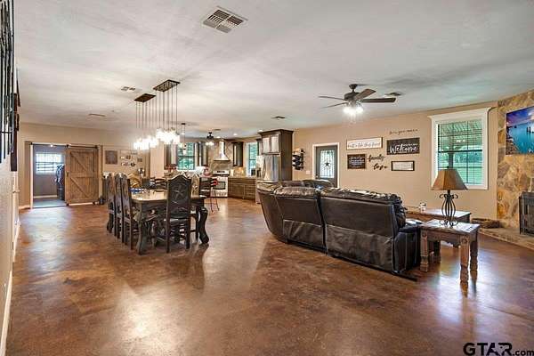 Rustic charm meets wide-open Texas living in this 2012 4-bedroom, 2.5 bath barndominium, offering just under 3,000 square feet of comfortable space set on 21 beautiful acres. Thoughtfully designed for both function and character, this property is fully equipped for a true country lifestyle--and even includes special touches for the gun enthusiast, featuring a hidden gun case and a discreet hidden closet for secure storage. Outside, you'll find a stocked pond, 30x60 shop, carport, multiple outbuildings, and fenced pasture ready for livestock--and yes, the livestock can stay! A well-established chicken coop and honey bee hives add to the turnkey homestead appeal. Tucked just outside city limits, this peaceful retreat offers privacy without isolation, all while being a short drive to everyday necessities. Whether you're looking to ranch, homestead, or enjoy room to roam, this one-of-a-kind barndo delivers rustic living with modern convenience.