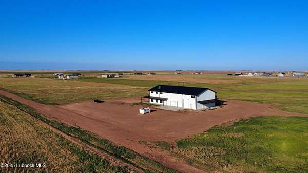 Luxury 6,600 sqft Barndominium on 20 Acres! This stunning 6,600 sqft barndominium sits on 20 acres of land right within the Lubbock city limits. The main living space of 4,057 sqft includes 4 bedrooms, 4.5 bathrooms, an office, a bonus room, a massive walk-in butler's pantry, and a great size loft. The living area features 10-foot ceilings on the first floor and soaring 28-foot ceilings in the living room, creating an open and airy feel. Enjoy nearly 360-degree views with 3,121 sqft of wraparound covered porch space. The property also includes a large shop area with five overhead doors, including a pair of 10ft and 16ft pull-through doors, and a 250 sqft storage/utility room. With no property restrictions, the possibilities are endless. Currently under construction and expected to be completed by September, this property offers the buyer the opportunity to personalize finishes like paint and flooring. Don't miss out on this unique, luxury barndominium!