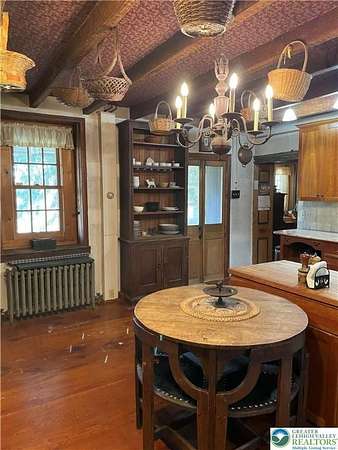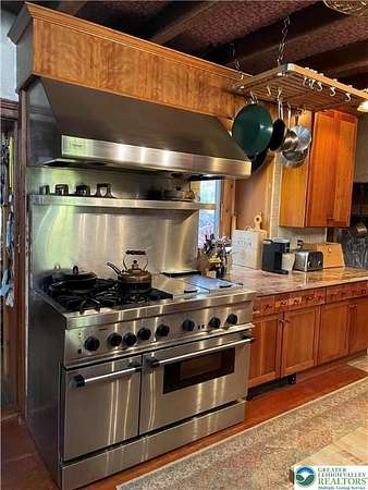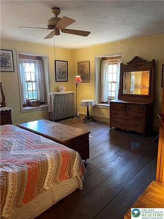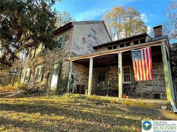 WELCOME TO AN OPPORTUNITY TO OWN A BIT OF HISTORY! This stone farmhouse was originally built back in the 1700s. Many upgrades such a Professional grade Thermador Oven compliments the remodeled kitchen. Granite counter tops & a tasteful backsplash elevate the cooking experience along with plenty of beautiful lighting & an 1800s working Peer Dockash cook stove. Above the kitchen there is a spiral staircase leading to a cozy den/office/sewing room/4th bedroom with a working stone fireplace & many windows for seeing some great views. The living room contains numerous floor-to-ceiling, built-in bookshelves along with your very own wooden, rolling library ladder. A Cathedral ceiling is a focal point in the dining room which is a newer addition that has tons of windows for natural lighting, matching cedar coat closets & beautiful French doors for added light. The upstairs has 3 bedrooms with deep windowsills great for sitting in with a good book and admiring nature outside. There is a huge attic with electric that could be converted into additional living space. The house has a lovely covered front porch where you can sit with a cup of coffee watching the neighborhood horses graze in the fields. There are 2 covered side porches & an open 2-car garage with a full work area in the back. Many updated radiators installed throughout the house. A stream runs alongside the driveway & many trees lining the property. Plenty of room for outdoor activities on over 5 acres of wooded land!