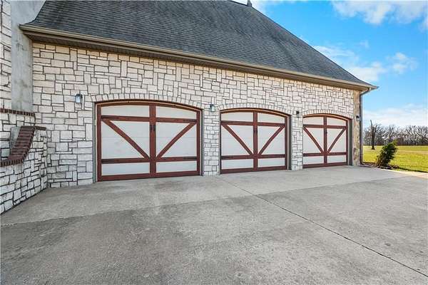 Oversized 3-car garage with room for vehicles, tools, and equipment.