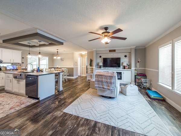 Well maintained home situated on 4.26 acres in Jefferson County! This move-in-ready property offers modern comfort and thoughtful design throughout. The spacious living room provides plenty of room to relax and gather around the cozy fireplace. An open-concept layout makes entertaining easy, with a highly functional kitchen featuring a massive island as the centerpiece. The primary suite is generously sized and includes a stunning owner's bath with a large garden tub and built-in shelving. Two additional spacious bedrooms are positioned in a split floor plan, offering added privacy. Step outside to enjoy the covered porch overlooking the expansive backyard and surrounding land-perfect for relaxing, entertaining, or simply enjoying the peaceful setting.