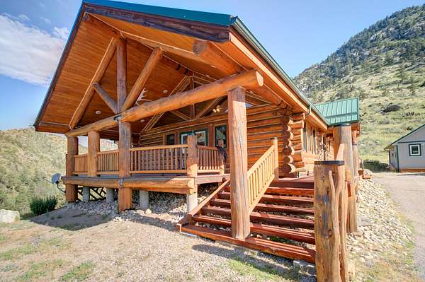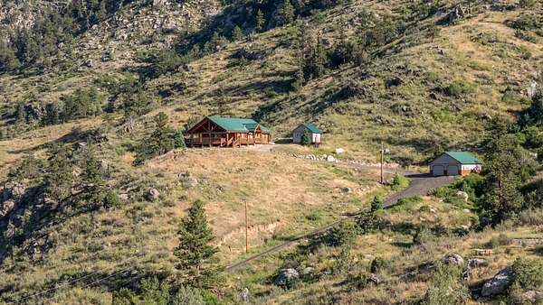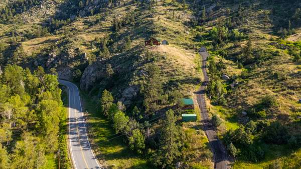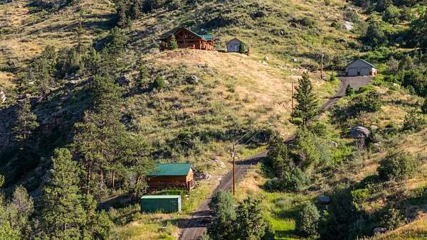 Built in 2001, this custom log home has been a cherished full-time residence for over 20 years. Every structure on the property--from the home to the studio and outbuildings--was thoughtfully added to support a creative, self-sufficient mountain lifestyle. The elevated setting above the North Fork of the Big Thompson River provides exceptional views, privacy, and a deep sense of connection to the land.