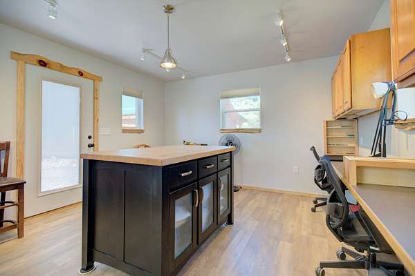 A detached 320 sq ft studio building with power, ideal for use as an art studio, office, or guest space