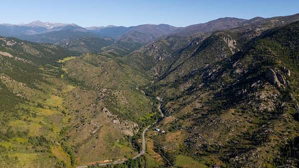 The 3.12-acre parcel sits above the North Fork of the Big Thompson River, offering dramatic views, excellent sun exposure, and a true sense of mountain solitude. The land features a blend of rugged rock outcroppings, timbered hillsides, and open, usable ground around the home and outbuildings. Native grasses, wildflowers, and evergreen trees dot the landscape, attracting frequent visits from deer, elk, and bighorn sheep. Soils are characteristic of the Front Range foothills--well-drained and rocky in places, ideal for low-maintenance, natural landscaping.
