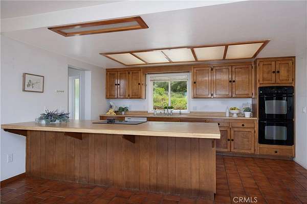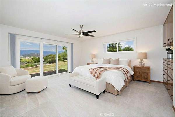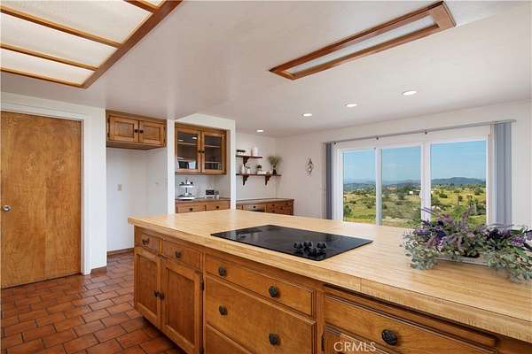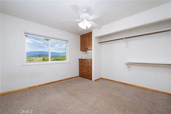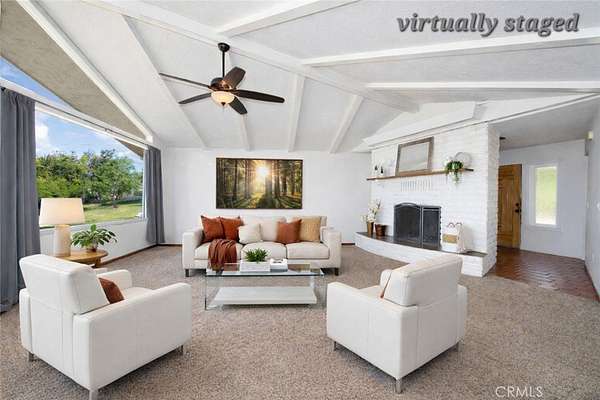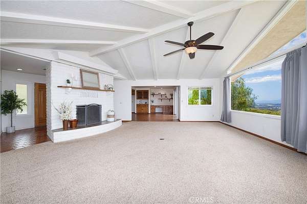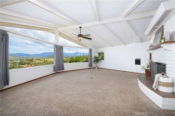 Oh, those panoramic views!! This single level diamond in the rough is waiting for someone to update it & make is shine. The living room centerpiece is the huge white wood burning brick fireplace, accented with high beamed ceilings with huge windows to capture that incredible valley and mountain view. The 2.2 acres offer potential for an ADU (or 2) and parking for huge vehicles & several cars. Inside, this well loved home that will be a stand out with your updates is ready for move in. There’s one primary bedroom with attached bath, 3 secondary bedrooms and 1 1/2 baths. The living room, dining room and kitchen combine for a spacious great room with sliders to face the view. Can you imagine adding a patio off the sliders to savor this incredibly serene view? You can enjoy the upgrading projects at your leisure as money and time allow. The oversized 2 car garage and the huge laundry room have 3 closets (one is more of a storage room) for possibly a pantry and all your extras. This one definitely won’t last! Hope you come on by!