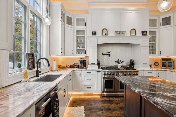 - Dishwasher, Disposal, Double Oven, Gas Range, Ice Maker, Microwave, Refrigerator, Trash Compactor, Water Purifier