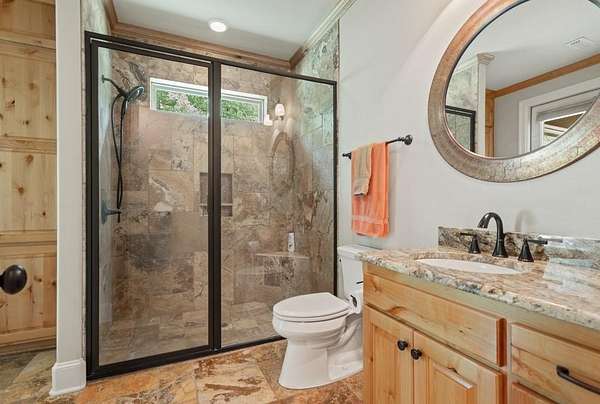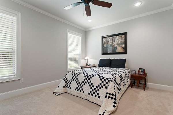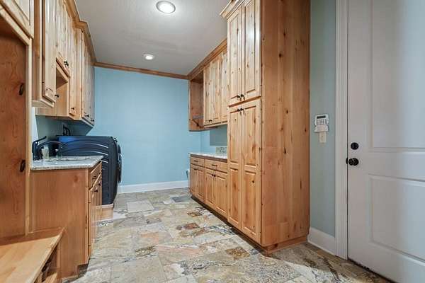 Two additional bedrooms each have access to full baths with quality finishes. The mudroom offers a drop zone, laundry area, sink, and extra storage off the oversized two-car garage.