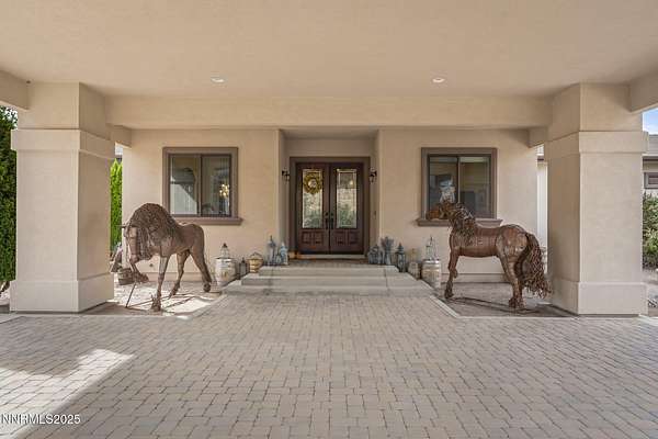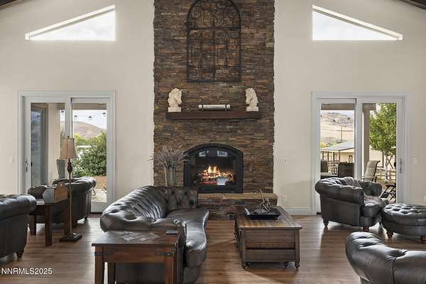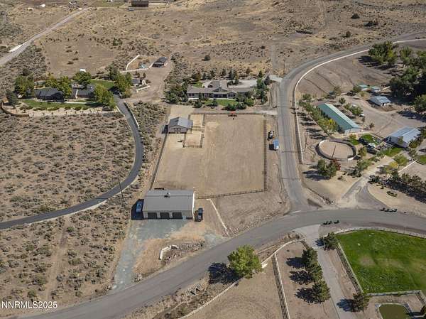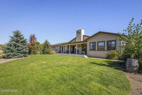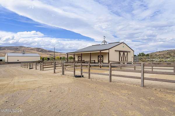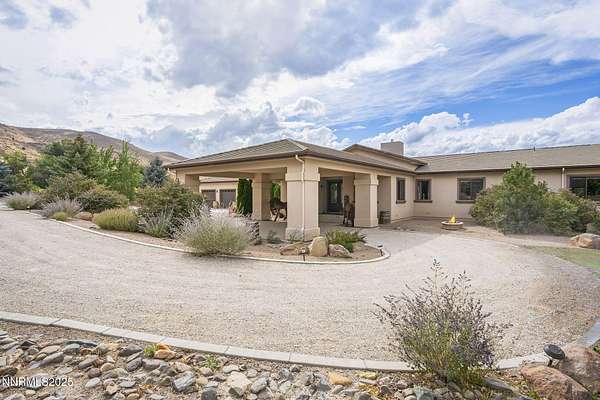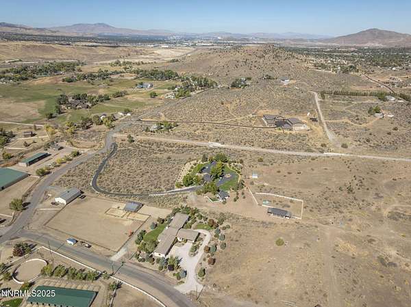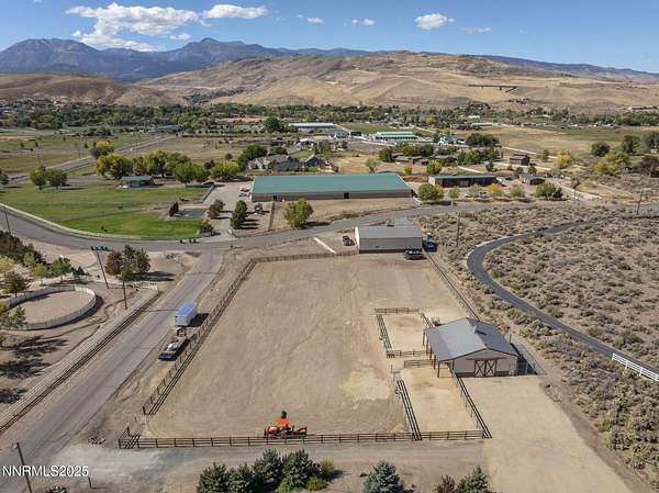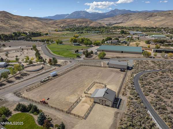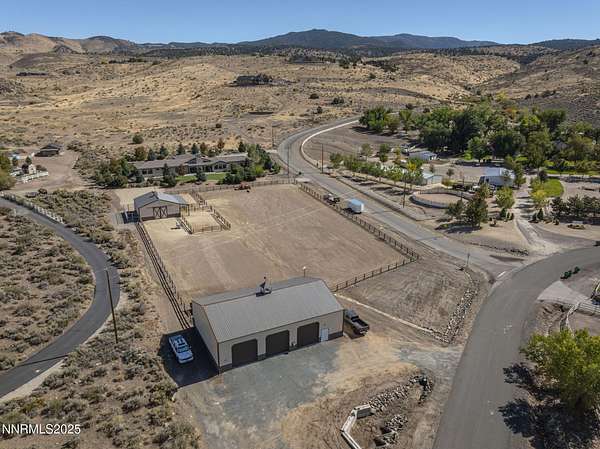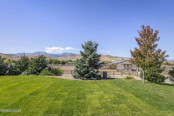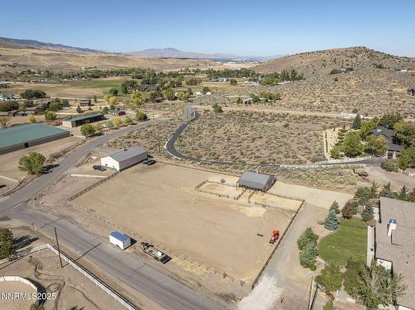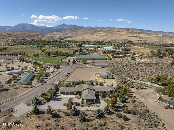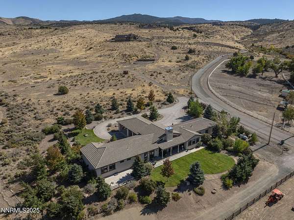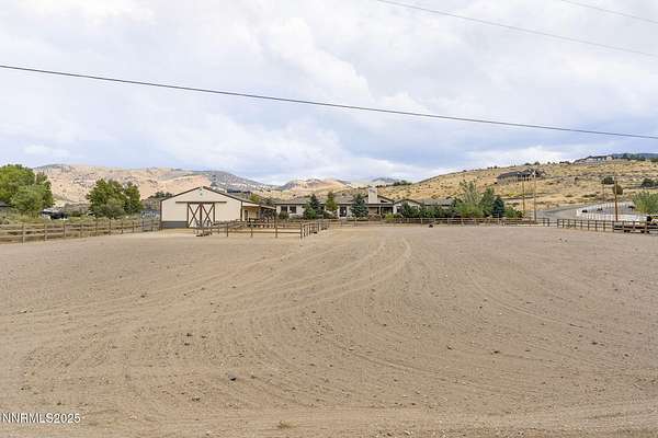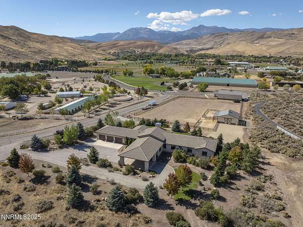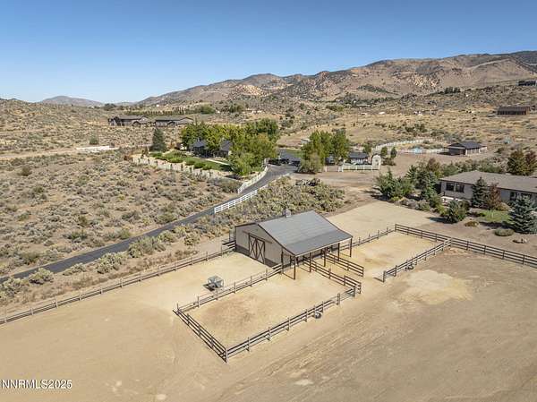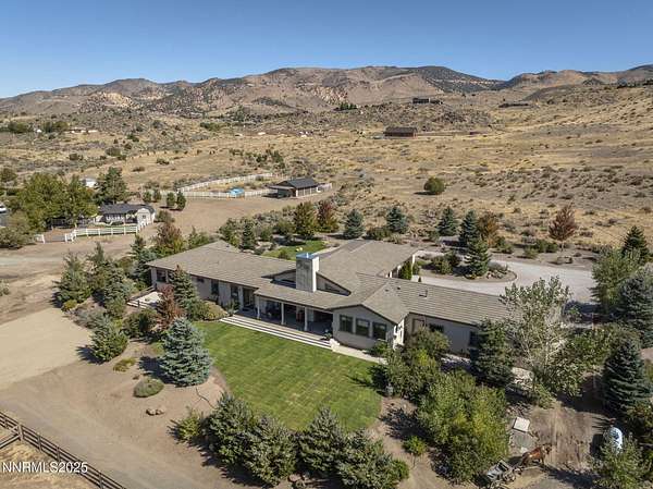 Stunning custom home situated on almost 5 acres in the highly sought-after Steamboat Valley with unobstructed mountain views. This beautifully maintained home features four bedrooms, 3.5 bathrooms, and over 4,000 sq ft of luxury living space. The spacious and bright great room boasts soaring vaulted ceilings with wood beams and a floor-to-ceiling stone fireplace, featuring a wood-beam mantle, which makes it a beautiful focal point. The upgraded kitchen is a chef's dream, featuring high-end, professional-grade appliances, an oversized island, and an abundance of soft-close cabinets and granite countertops, along with two large pantries. Enjoy the extra space in the luxurious main suite, which boasts a large walk-in closet. The primary bathroom boasts a spa-like ambiance, complete with a spacious garden tub, walk-in shower, and a luxurious bidet toilet. There are an additional three bedrooms and a cozy den/office space, providing ample room for all your needs. Enjoy every inch of the almost five acres with lush landscaping, a large 42X64 shop, a 36x36 horse barn, and tons of room for all of your outdoor toys and vehicles, including the covered portico. This property offers ample space for all your beloved animals, including several designated dog areas that meet Washoe County's approval as kennel facilities. This location provides a tranquil escape, yet is just a short drive to all the conveniences and amenities desired, including a quick trip to majestic Lake Tahoe. Don't miss your chance to own this remarkable property in a prime location!