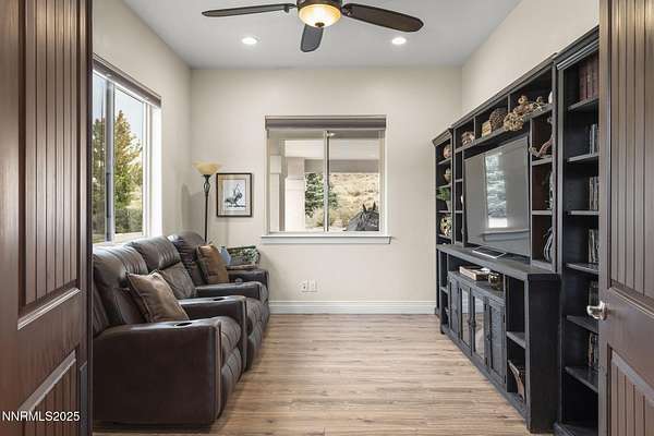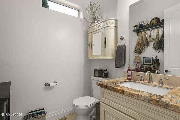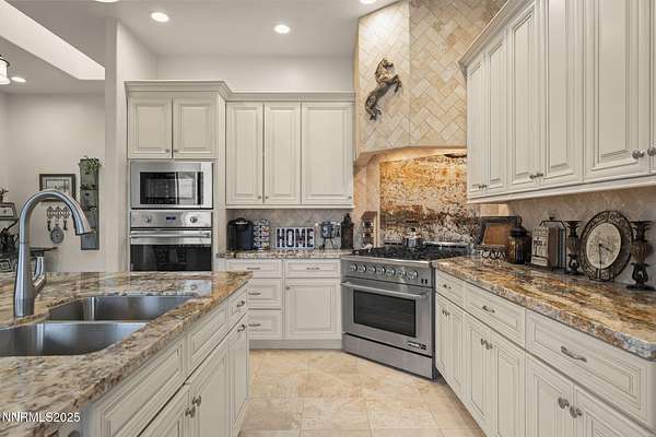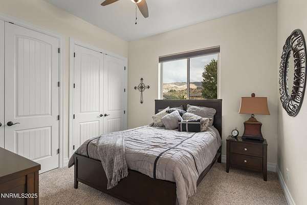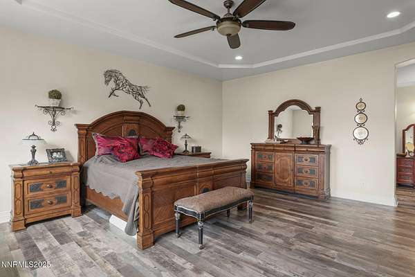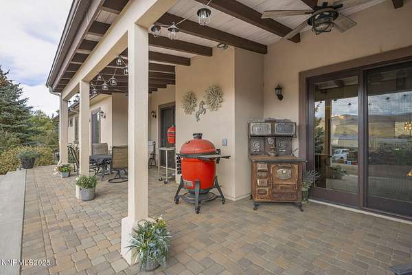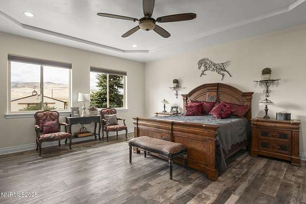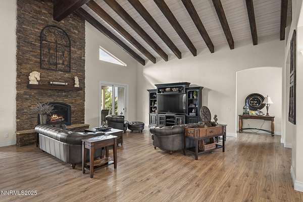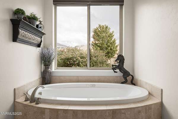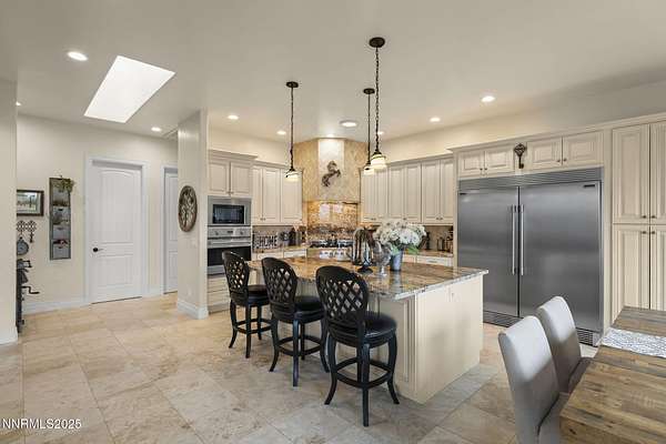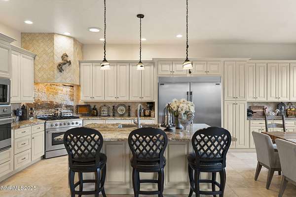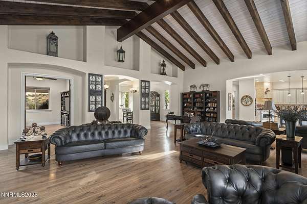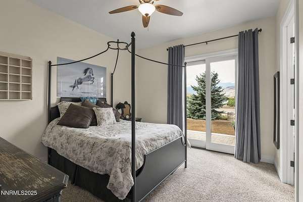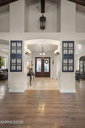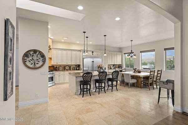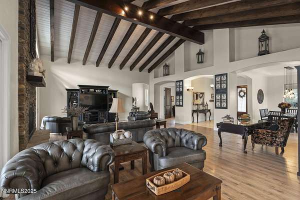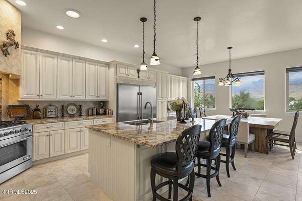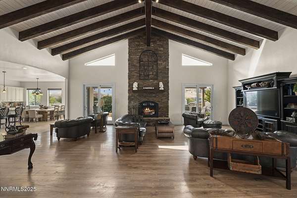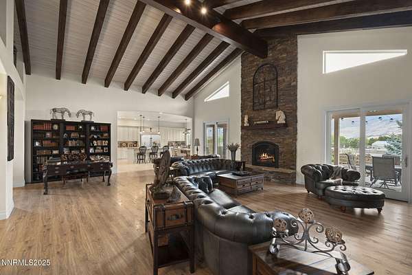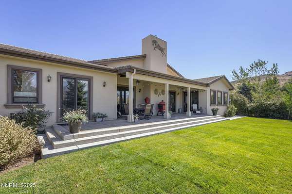 Stunning custom home situated on almost 5 acres in the highly sought-after Steamboat Valley with unobstructed mountain views. This beautifully maintained home features four bedrooms, 3.5 bathrooms, and over 4,000 sq ft of luxury living space. The spacious and bright great room boasts soaring vaulted ceilings with wood beams and a floor-to-ceiling stone fireplace, featuring a wood-beam mantle, which makes it a beautiful focal point. The upgraded kitchen is a chef's dream, featuring high-end, professional-grade appliances, an oversized island, and an abundance of soft-close cabinets and granite countertops, along with two large pantries. Enjoy the extra space in the luxurious main suite, which boasts a large walk-in closet. The primary bathroom boasts a spa-like ambiance, complete with a spacious garden tub, walk-in shower, and a luxurious bidet toilet. There are an additional three bedrooms and a cozy den/office space, providing ample room for all your needs. Enjoy every inch of the almost five acres with lush landscaping, a large 42X64 shop, a 36x36 horse barn, and tons of room for all of your outdoor toys and vehicles, including the covered portico. This property offers ample space for all your beloved animals, including several designated dog areas that meet Washoe County's approval as kennel facilities. This location provides a tranquil escape, yet is just a short drive to all the conveniences and amenities desired, including a quick trip to majestic Lake Tahoe. Don't miss your chance to own this remarkable property in a prime location!