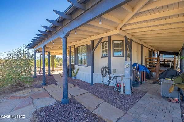 BEAUTIFULLY REMODELED & MAINTAINED 3 BR/ 2 BA MANUFACTURED HOME ON 4.3 ACRES OF FENCED HORSE PROPERTY! HOME BOASTS LUXURY VINYL PLANK FLOORING THROUGHOUT (NO CARPET), COZY FIREPLACE IN FAMILY ROOM, RECENTLY PAINTED CABINETS, STAINLESS STEEL APPLIANCES, MANY CEILING FANS, WRAP AROUND COVERED PATIO W/ NEW FRONT PORCH W/ OUTDOOR TV AND OUTLETS, LARGE STORAGE SHED W/ ELECTRICITY (COULD BE FUTURE WORKSHOP) , NEW ELECTRONIC GATE W/ CLICKERS, 12' X 24' HAY BARN, 75' ROUND PEN, UNDERGROUND PVC PIPES ROUTING WATER TO ALL ANIMAL AREAS PLUS LOTS OF SHADE STRUCTURES FOR HORSES. THERE IS EVEN AN AIRCONDITIONED DOGHOUSE! LOT BACKS STATE LAND ON WEST SIDE SO NOTHING CAN BE BUILT. WALK, HIKE, BIKE OR RIDE YOUR HORSES OUT TO TRAILS DIRECTLY LEADING TO THE MOUNTAINS FROM THIS SPECIAL LOT!