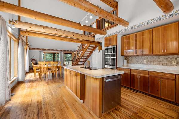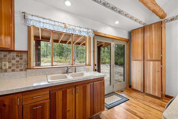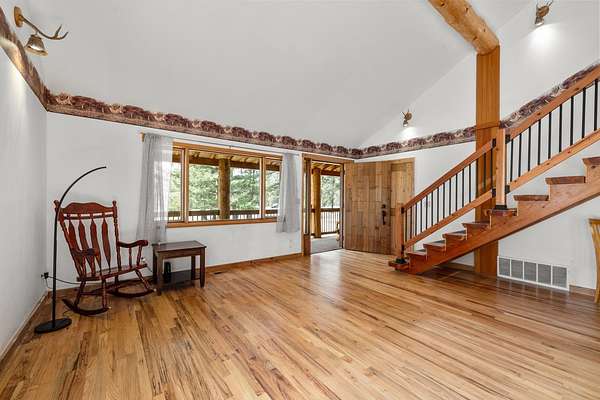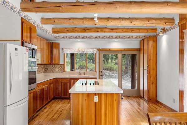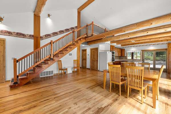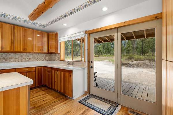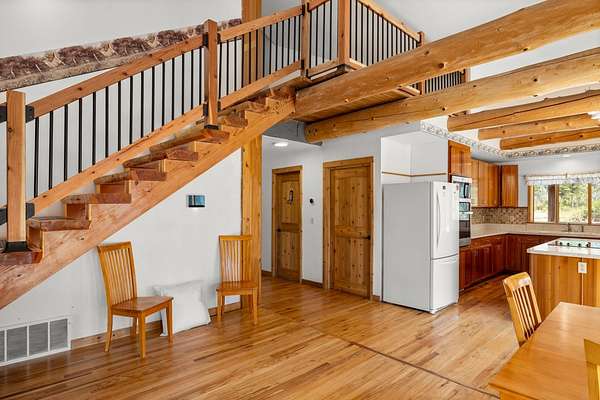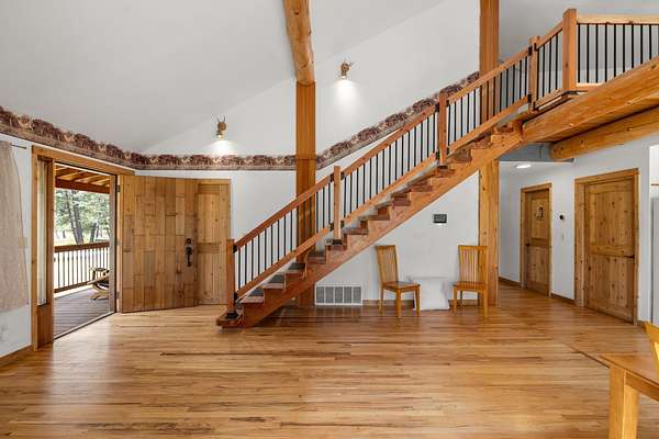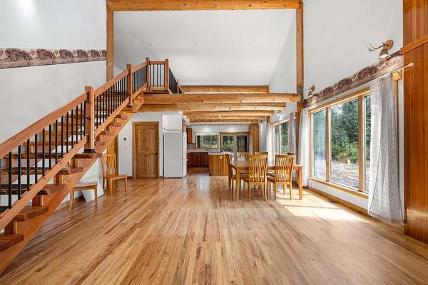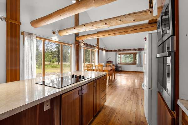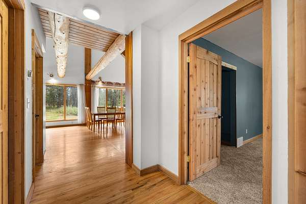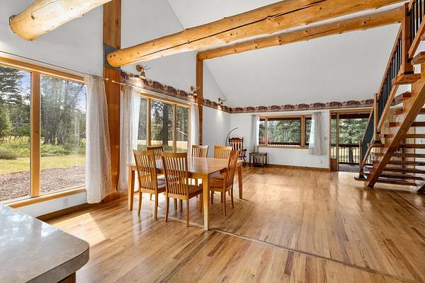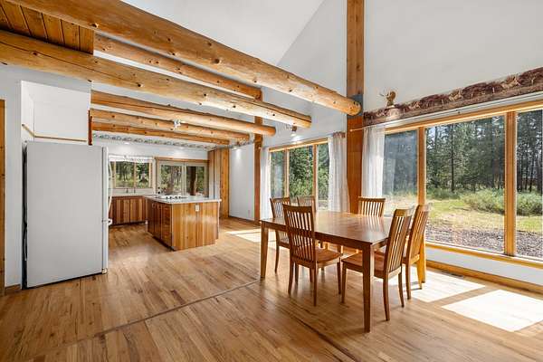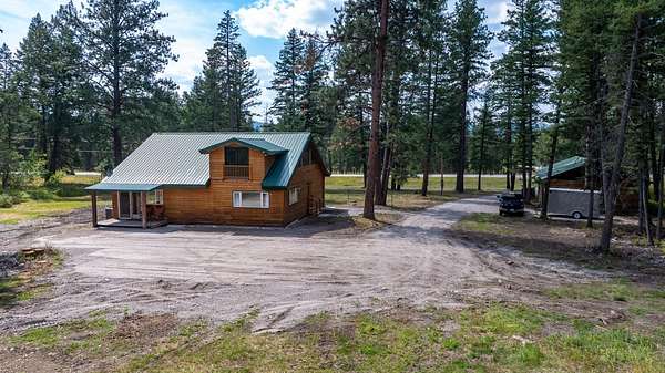 Don't miss this chance! Cabin Retreat on 3.5 Acres - backs to state ground! Set against the dramatic backdrop of the Swan Range, this 2006-built log-style cabin offers 3.5 acres of wooded privacy, mountain views, and a rare opportunity to create your Montana legacy. Backing directly to State of Montana land, it's a property where the forest feels endless, wildlife roams freely, and the possibilities are wide open. Inside, craftsmanship and light abound. Towering ceilings with exposed beams, expansive windows, expansive hardwood floors and warm woodwork create an atmosphere that is both inviting and inspiring. The kitchen with central island flows seamlessly into the dining and living areas, making this home ideal for gatherings. The main floor features two oversized bedrooms. The primary boasts original hardwood floors and its own ensuite bath, while the second bedroom offers brand new carpet and flexible potential, perfect as a guest space or even a cozy family room. Upstairs brims with charm and functionality, offering two additional bedrooms, a full bath, a small loft nook ideal for an office or reading retreat, and a huge walk-in hall closet that makes storage effortless. An 800 sq. ft. unfinished basement adds even more potential, it's perfect for storage now, with plenty of space to finish for future living areas, recreation, or hobbies. Outside, a 30x40 detached shop is the ultimate Montana bonus, complete with a wood-burning stove, and ample room for projects, vehicles, or toys. Whether you're a craftsman, outdoorsman, or simply need extra space, this versatile structure expands what's possible on the property. A covered porch frames the home, inviting you to slow down and take in the peace of the surrounding forest. Originally envisioned as a legacy property, this cabin is ready for its next chapter, awaiting new owners to finish what was started and make it truly extraordinary. Just minutes from Bigfork, Flathead Lake, and the recreation-rich Swan Valley, this is more than a home, it's an opportunity to embrace Montana living at its best!