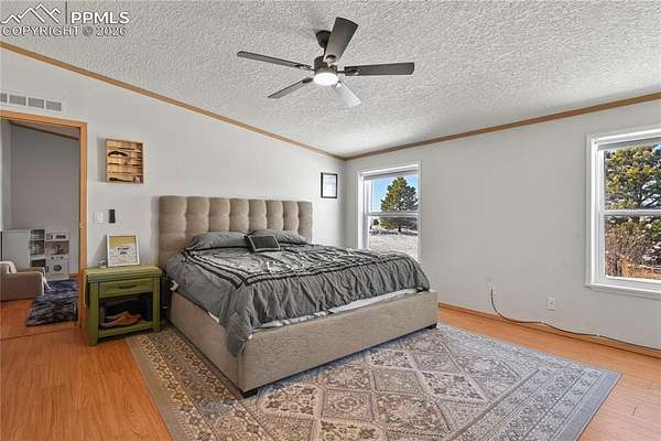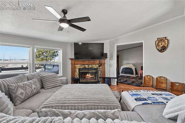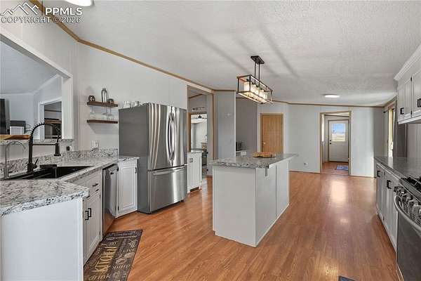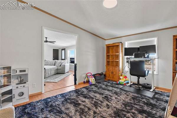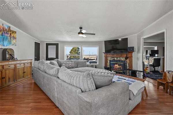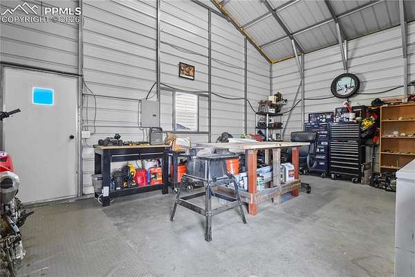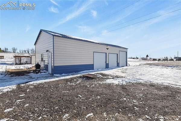 This thoughtfully updated 3-bedroom, 2-bath home offers true main-level living on 8.80 acres in Calhan, with no HOA and no covenants to restrict how the property can be used. Approximately 4.5-5 acres are fenced and cross-fenced, providing flexibility for animals, equipment, and future use while still feeling manageable and functional. Inside, the home has been improved with updates that focus on longevity and everyday comfort. The kitchen features newly painted cabinetry, brand-new countertops throughout the entire home (2025), and a 2023 refrigerator. A 2024 reverse osmosis system provides high-quality drinking water, and most electrical receptacles have been upgraded to tamper-resistant outlets. Major system updates include new well pump electrical in 2025, plumbing was jet cleaned in 2023, a paid-off propane tank, a 2022 roof, and 2017 A/C. A Google thermostat and Bluetooth-controlled ceiling fans were added in 2025, and both bathrooms have been remodeled into clean, updated spaces ready for immediate use. The acreage is set up to be used, not just enjoyed. The property includes a 250-square-foot chicken run attached to an 8x8x8 coop with electrical, a 20'x30' barn with power, and an impressive 25'x50' garage with electrical, an RV hookup, and a dedicated RV door, ideal for trailers, recreational vehicles, or workshop space. A wood-burning fireplace adds warmth and character during Colorado winters. With usable land, breathtaking views, meaningful upgrades, and true freedom of use, this property offers a rare combination of space, infrastructure, and practicality.