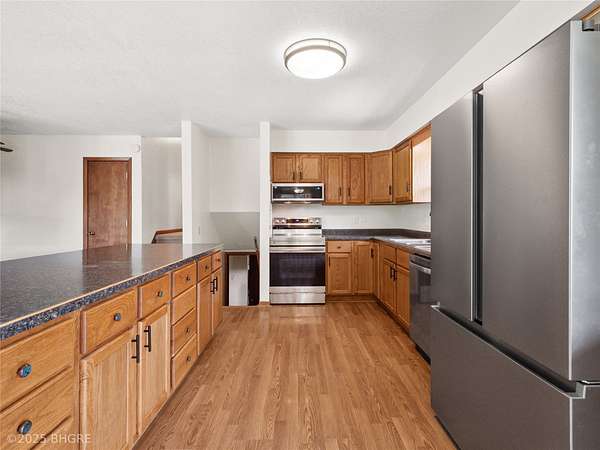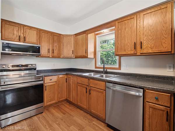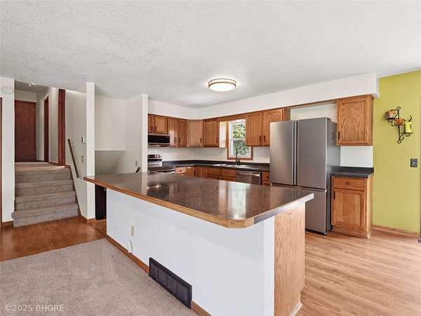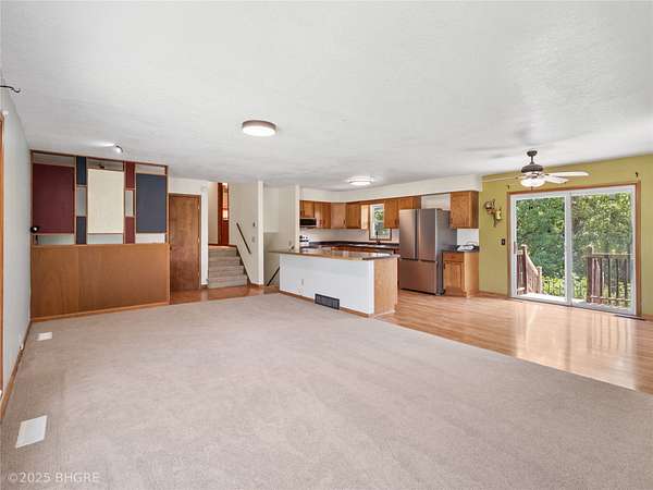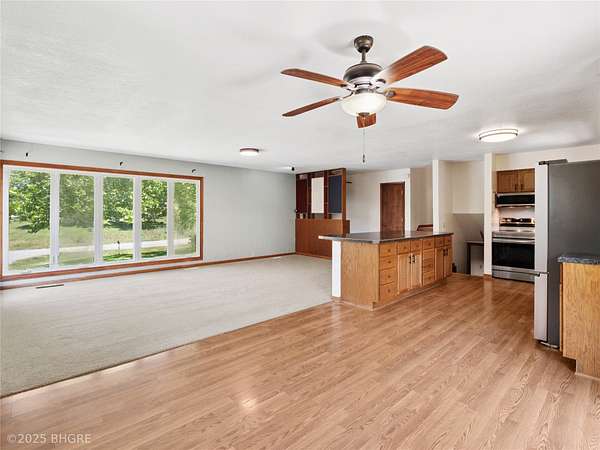 Hunter's dream home! You don't need a large acreage when you're surrounded by public hunting ground. This welcoming split-level home with new roofs on both the house and barn sits on 1.67 acres just off Hwy 14 in Knoxville, offering peaceful country living with modern updates. Only 10 minutes to Lake Red Rock-a recreation destination with trails, hiking, fishing, swimming, kayaking, and nearby state parks plus a convenient boat ramp. Inside, an open-concept living, dining, and kitchen area is perfect for gatherings, with numerous windows filling the space with natural light and a kitchen offering ample storage. New flooring adds to the fresh, move-in-ready feel. Upstairs features 3 spacious bedrooms and a full bath with double vanity. The lower level includes a cozy fireplace, office space, laundry area with utility sink, and a 3/4 bath. A 2-car tuck-under garage provides great storage, plus there's an outbuilding with water and electricity-ideal for hobbies, animals, or a workshop. Recent updates include a tankless water heater, water softener, all new appliances, updated plumbing (2025), and a completed Time of Transfer septic inspection (2025). Relax or entertain on the large deck surrounded by mature trees and scenic countryside. Truly turnkey living at its best-13-month HWA Platinum Home Warranty included!