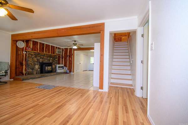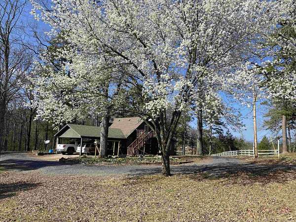 CHRISTIAN MOTORCYCLE ASSOCIATION nearby! FREE yourself from the city to this updated COUNTRY HOME! Perched on 5.54 acres of park like landscape, this LOW MAINTENANCE home has been impeccably maintained and offers a coveted view of the wildlife from upstairs on the spacious balcony and downstairs on the large patio. Newly installed A/C to keep you cool and a beautiful ROCK fireplace with a pellet stove and blower keep the home warm during the short winter. Soaring wood ceilings in the upstairs bedroom suite create cabin feel and opens to the balcony, perfect for relaxing in the morning on the sundeck. Recent updates throughout the home enhance its appeal and functionality. The property includes a spacious 30x40 insulated SHOP has 220 and 110 electricity connected. There are two 10x15 finished rooms and a lean-to for implement storage or perhaps horse stalls. Enjoy the peace and quiet of this low-traffic area, surrounded by towering 100-foot pine trees and mountain views. This home is a true retreat, offering a tranquil and picturesque setting for those seeking a peaceful lifestyle!