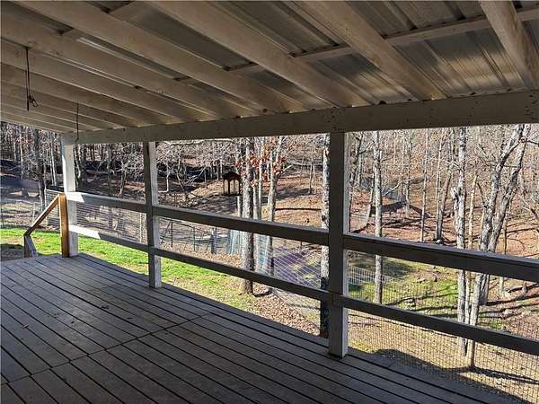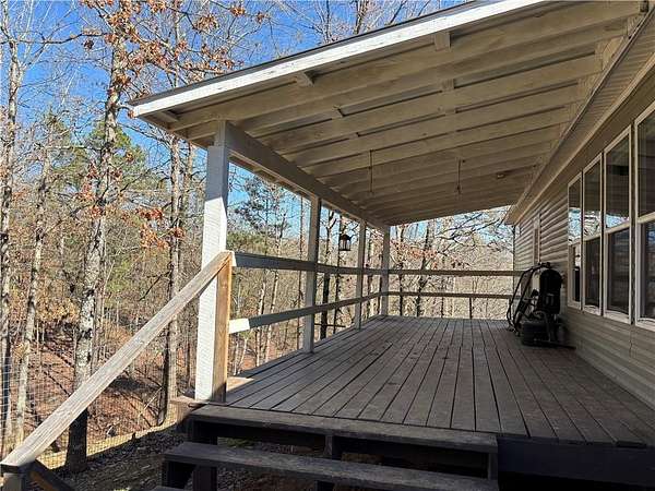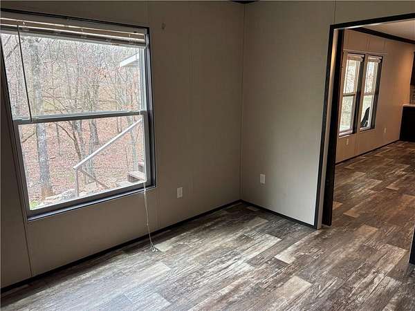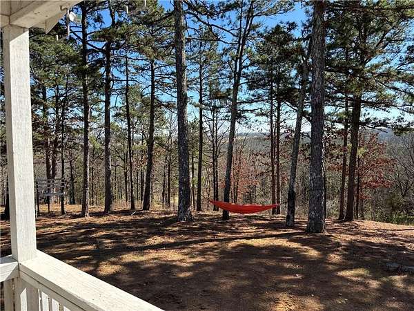 From intersection of I-40 and Hwy 124. Follow Hwy 124 10.3 miles, gravel easement/driveway will be on the left. Should see pointer sign near green mailbox (which has address on it). Follow gravel drive past the cabin home on the right. For sale sign will be in front of the open green entry gate. Follow gravel drive through the gate. Mobile home is at the top of the driveway. 2/10 mile from Hwy 124 to the home.
