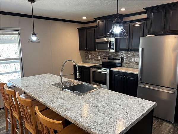 Privacy & peaceful views of distant mountains are found with this 2018 mobile home on over 9 acres, just off Highway 124. Room to spread out too, with over 2,000 sqft including 4 bedrooms and an office space The primary suite has a garden tub, shower, & walk-in closet. The large open living area & modern eat-in kitchen are perfect for entertaining. Step out onto either the covered front or back decks to enjoy a fresh gentle rain, cool breeze, or to spot deer and other wildlife. Back inside, there’s a refrigerator (<2 yrs old), a 55”wall-mounted TV (primary suite) & a 32” wall-mounted TV in another bedrooms. Outside is an RV power hook-up, deer feeder, deer stand, chicken coop, outbuilding, & a pond! The entry gate to the home is remote controlled & most of the property is fenced. This mobile home is on a permanent foundation, too.