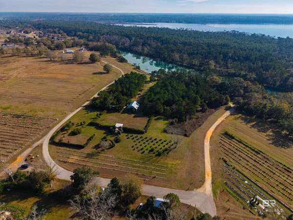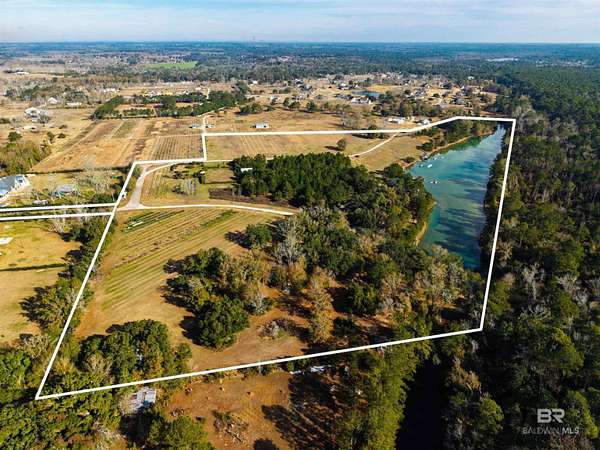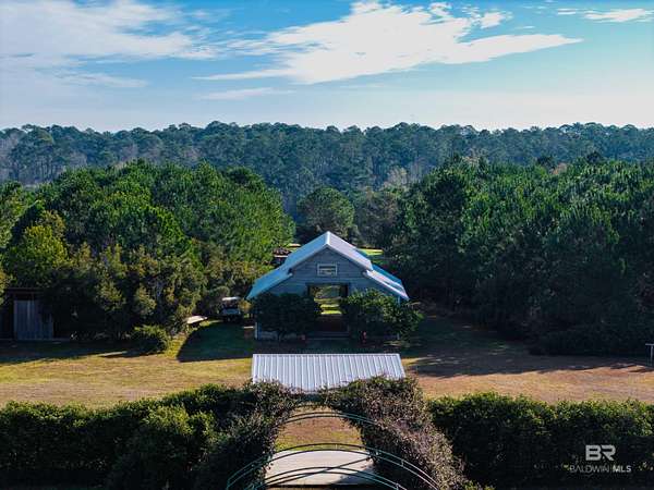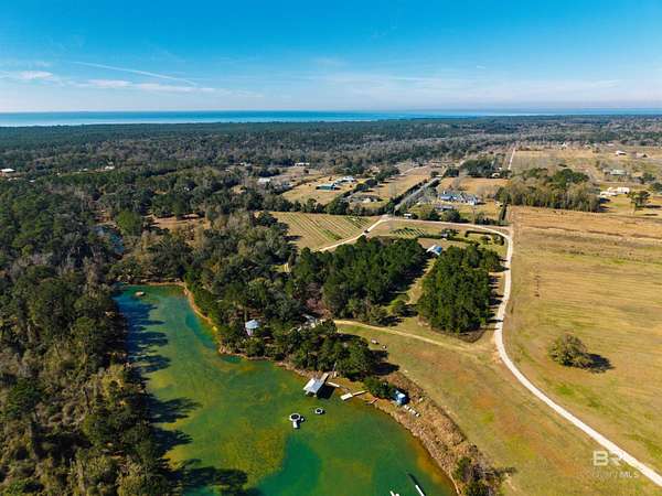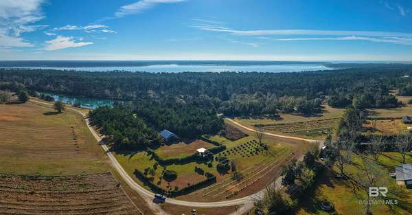 Extraordinary opportunity to own approximately 44.4 acres of an organically certified blueberry farm on Alabama's coveted Eastern Shore, just 1,000 feet from Weeks Bay and moments from Mobile Bay. Known as "The Weeks Bay Plantation" this rare property offers residential and/or commercial potential, blending productive farmland with event and agrotourism uses amid natural beauty and coastal breezes.The property features a southern-style barn event venue, outdoor stage and amphitheater overlooking a 10-acre freshwater lake with cabana, dock, boat lift,boat ramp, zip line, and stocked for fishing--ideal for weddings, gatherings, festivals, and outdoor events.Established organic blueberry fields provide immediate agricultural value with room to expand. Offered ALL or PART, the property includes four B&B accommodations: a raised two-bedroom cottage, two one-bedroom cottages, and a private Airstream, all tucked among mature trees. Also included is a two-story grain bin office with terrace and lake views and a laundry facility servicing the B&BsThe pristine 10-acre lake has been used for professional waterskiing by course designers Kris LaPoint, Ed Brazil & Lucky Lowe. A rare combination of land, water, agriculture, and income potential, conveniently located near Fairhope, Daphne, and Eastern Shore amenities. Properties of this caliber seldom come to market. Buyer to verify all information during due diligence.