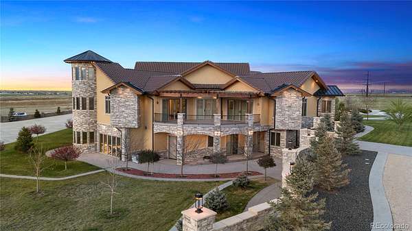 Introducing Picadilly a crown jewel among Colorado’s most distinguished estates. Set on 35 private acres with sweeping views of the mountains and Barr Lake. This custom-built sanctuary blends refined luxury, peaceful seclusion, world-class custom finishes, all just minutes from DIA and Downtown Denver. This residence is a masterclass in craftsmanship and scale. A grand entrance opens to soaring light-filled living spaces, where fine finishes, custom millwork and thoughtful design converge to create an atmosphere of effortless sophistication. The main level is anchored by a gourmet chef’s kitchen with high-end appliances and custom cabinetry, flowing into a formal dining room and an expansive great room. Two lavish primary suites offer luxurious comfort, while a spectacular office complete with a spiral staircase ascending to a private turret, adds a touch of architectural wonder. Both levels encompass three additional en-suite bedrooms, each with direct outdoor access to its own private patio, a rare feature that offers guests connection to the surrounding landscape. Descend via elevator to a private lower-level oasis designed for wellness and entertainment. Enjoy your gorgeous indoor pool that boasts bifold doors that open to your view of the Rockies. Hot tub, steam room, dry sauna, home theater, gym, wine cellar, billiards lounge, pool bar, and kitchen, all perfectly designed for both relaxation and hosting. A Lutron smart-home system ensures seamless control over lighting and entertainment throughout the home. For car collectors and hobbyists, the heated attached garage includes four bays and a 50-ft RV bay, while the detached garage/workshop offers even more space, complete with a beautifully finished apartment above for guests or extended stays. Just 2 miles from Barr Lake State Park and preserved open space, wildlife, horseback trails and boating. Picadilly is more than a home, it’s a private retreat, an entertainer’s dream, and a haven for equestrian life.