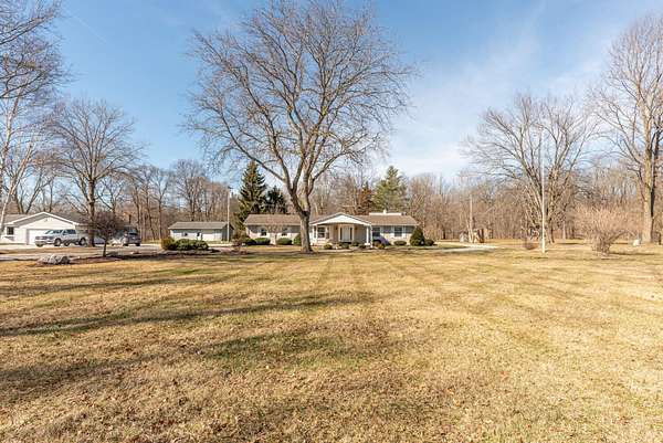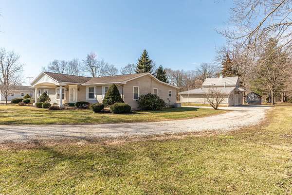Charming ranch home in London Township located 20 minutes to Ann Arbor! Beautiful setting for this 1740 square foot home that features a 2.28-acre lot with a pond and mature trees. Sit on your front covered porch and take in the country landscape! The kitchen is nicely sized with an adjoining eat-in area. Lots of cupboards and counter spaces, as well as a large pantry. Family room off the back of the home with a gas fireplace that walks out to a large concrete patio, nice place to take in the evening! Three bedrooms share one full bath as well as a half-bath off the kitchen. The living room is spacious and has a bay window with a seating area. Large mudroom-utility room with a huge closet storage area. There is a 10 x 20 basement under the utility room that houses the newer furnace and water heater (2021) also good for a storm shelter. There is a 2-car attached garage and separate workshop garage with heat and water! The building has room for 3-4 vehicles, a total dimension of 30 x 55. Another outbuilding 10 x 25 that used to be a horse stall with a concrete floor and electricity. Other features include a whole house generator, newer garage driveway apron, and irrigation system for the front flower beds. Home is move-in-ready and priced to sell!